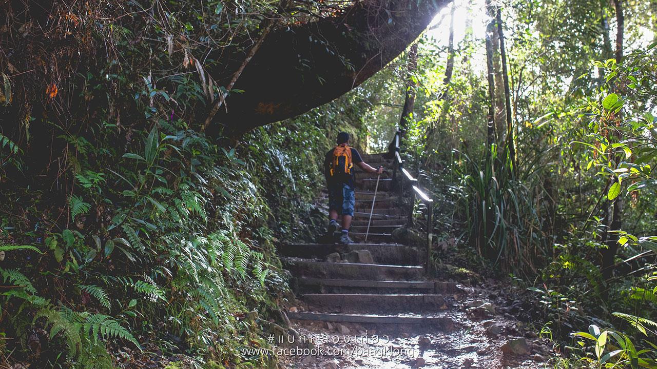 วันแรกของเราเริ่มต้นตอน 08.30 น. โดยมีไกด์นำทางที่ปีนเขามาแล้วมากกว่า 1,000 ครั้ง ในเวลา 11 ปี นอกจากนี้ยังเป็นลูกหาบไปในตัวด้วย จากที่ทำการเรานั่งรถของอุทยานมาประมาณ 4 กิโลเมตร จะมาถึง check in แรก จุดนี้อยู่ที่ความสูงประมาณ 1,500 เมตร ครั้งนี้ผมมีโอกาสได้ใช้ trekking shoe ขึ้นเขาเป็นครั้งแรก เพราะทางเดินที่เต็มไปด้วยหิน ดิน ที่ลื่นมากๆ ผมเดินผ่านอย่างสบายโดยแทบไม่ลื่นเลย เส้นทางเกือบทั้งหมดถูกทำเป็นขั้นบันไดไว้แล้ว แต่นักเดินป่าส่วนใหญ่มักจะบอกว่าการเดินตามขั้นบันไดนั้นยากและทรมานกว่าเส้นทางชันๆ ทั่วไปอีก