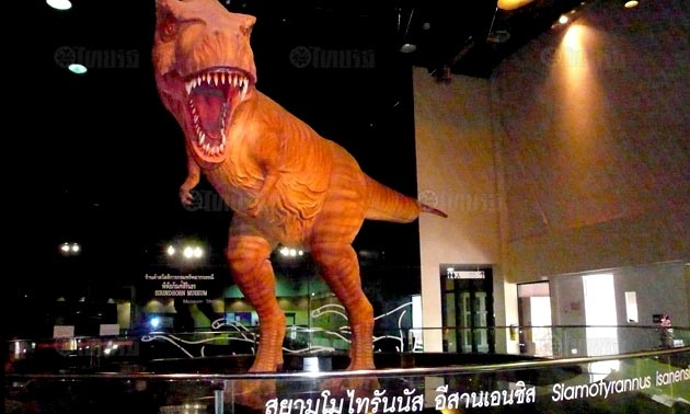 รูปปั้นจำลองลักษณะของไดโนเสาร์ สยามโมไทรันนัส อีสานเอนซิส ที่พบในประเทศไทย
