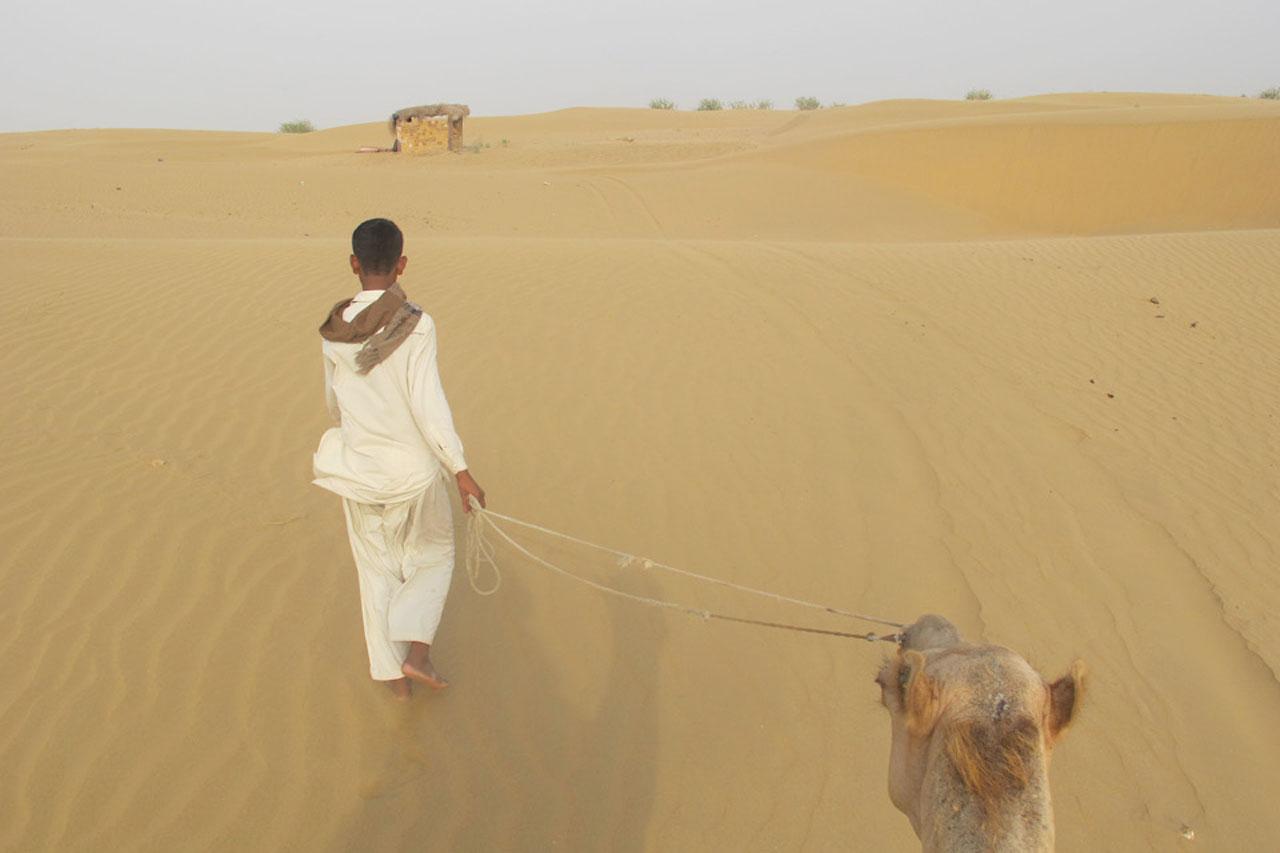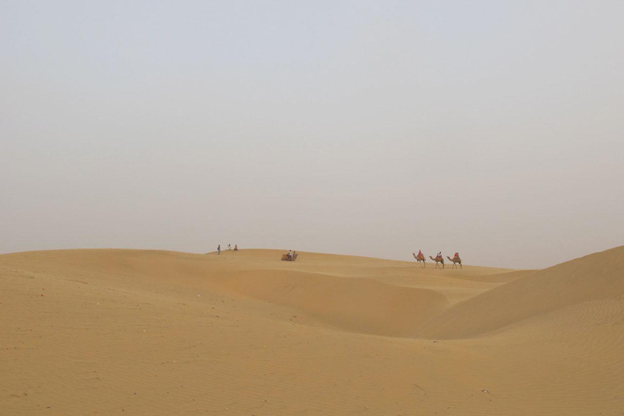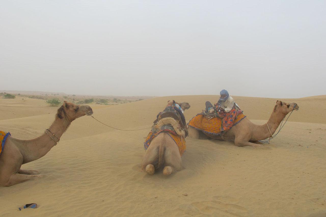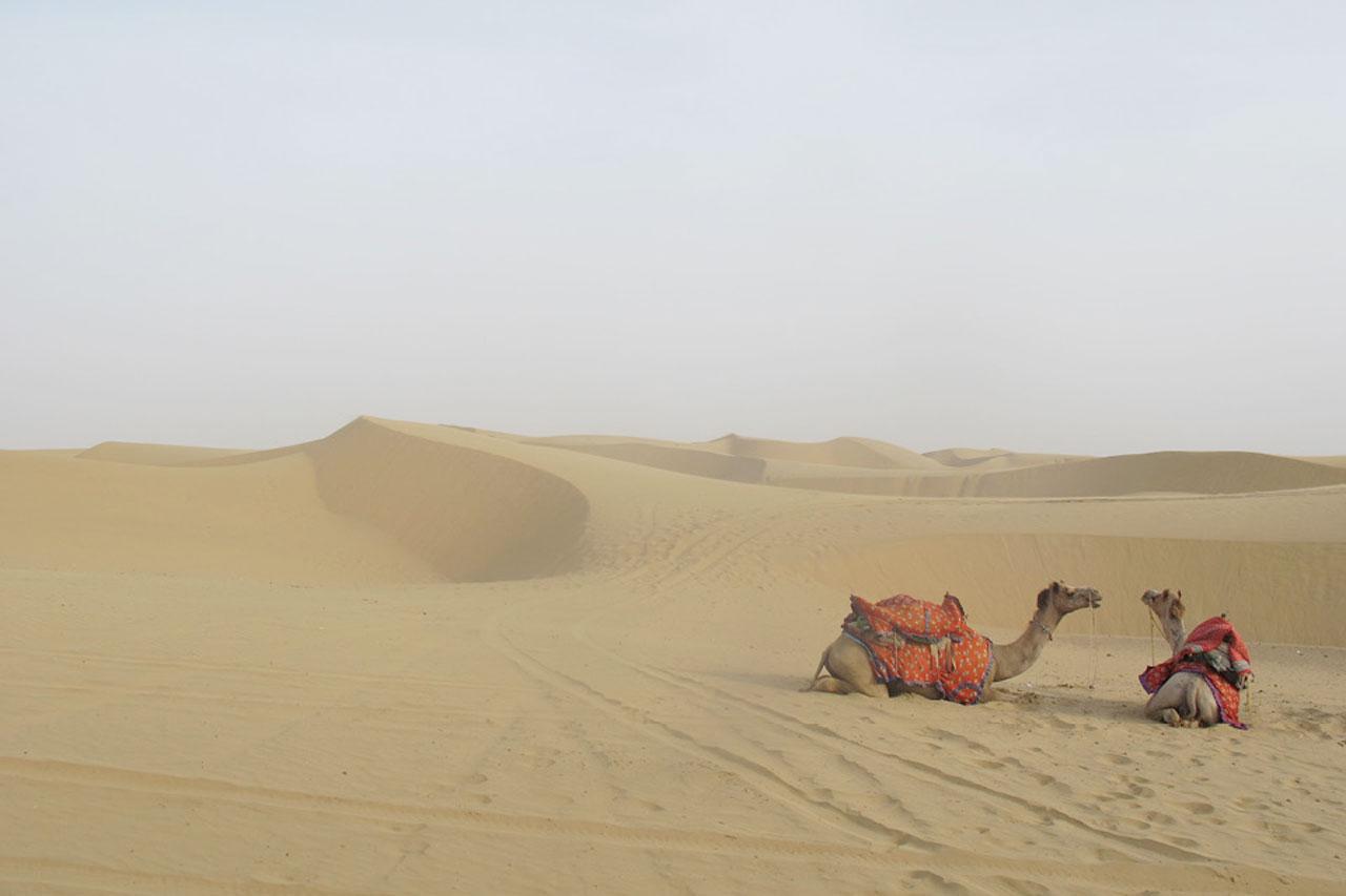 จุดหมายปลายทางของผมคือ การได้มาขี่อูฐที่ทะเลทรายธาร์ เมืองจัยซัลแมร์ (Jaisalmer) แคว้นราชาสถาน ประเทศอินเดีย ซึ่งผมอยากมาตั้งแต่ตอนที่ได้อ่านหนังสือ “ดื่มทะเลสาบ อาบทะเลทราย” ของบินหลา สันกาลาคีรี ซึ่งเขียนถึงเมืองนี้ ส่วนเหตุผลที่เลือกมาช่วงหน้าร้อนก็คือค่าตั๋วเครื่องบินและโรงแรมถูกมาก ด้วยความเป็นช่วงโลว์ซีซั่นแบบสุดขีด (Lonely planet เขียนไว้ว่าการเที่ยวจัยซัลแมร์ในช่วงหน้าร้อนถือเป็นการกระทำที่ crazy) อีกทั้งมิตรสหาย 2 คนของผมที่กำลังแบกเป้เที่ยวอินเดียหลายเดือนก็มีโปรแกรมที่จะมาเมืองดังกล่าวช่วงนั้นพอดี พอมีคนเที่ยวด้วยก็เลยต้องรีบคว้าโอกาสไว้ เพราะรู้ดีว่าอินเดียเป็นประเทศที่ชวนเพื่อนแบกเป้เที่ยวด้วยยากขนาดไหน จะเที่ยวคนเดียวก็จะรู้สึกว่าเลเวลตัวเองยังไม่แข็งแกร่งพอ