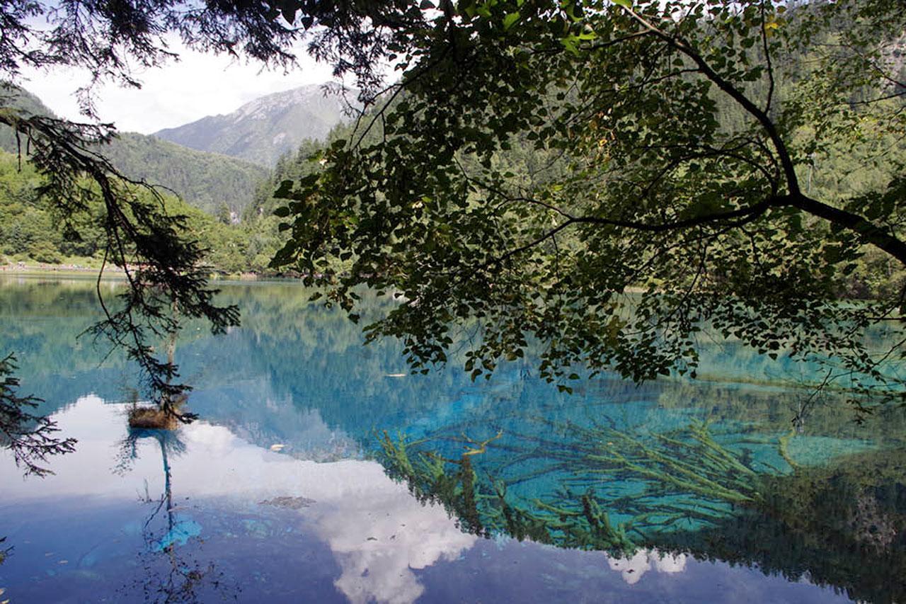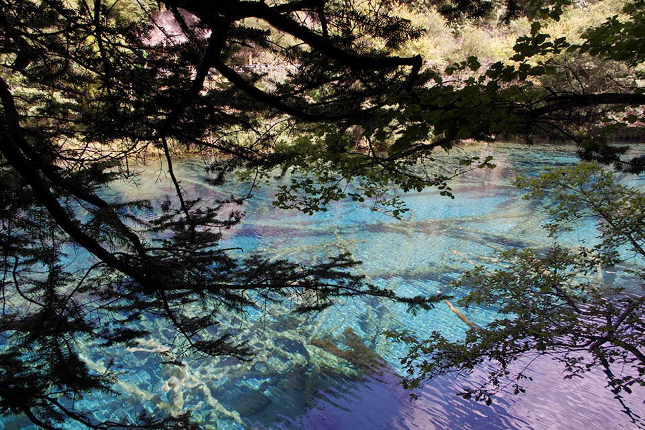 หลังจากนั้นเราเดินทางไปที่เส้นทางสระธนูไผ่ (The Arrow Bamboo Lake) ซึ่งเป็นทางเดินเท้า 12 กม. โดยผ่านจุดต่างๆ อย่างสระแพนด้า, น้ำตกแพนด้า (ชื่อดูหน่อมแน้มแต่ของจริงอลังการมาก), สระ 5 บุปผชาติ, สระไข่มุก, น้ำตกไข่มุก, ทะเลสาบกระจก สิ่งที่ทำให้เราทึ่งได้แก่ภาพสระน้ำหลากสีที่มีซากต้นไม้โบราณนอนนิ่งอยู่ใต้น้ำ เกิดเป็นภาพประหลาดเกินบรรยาย