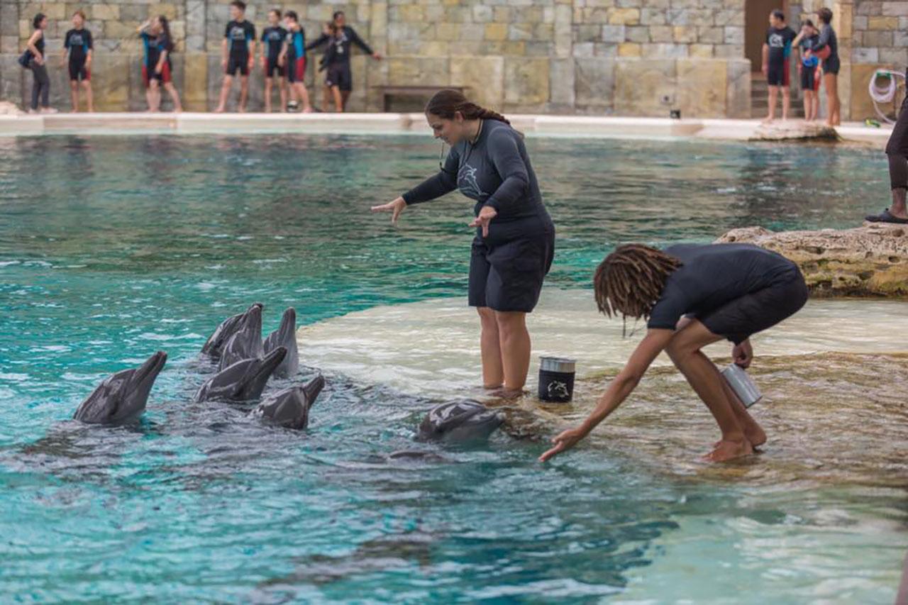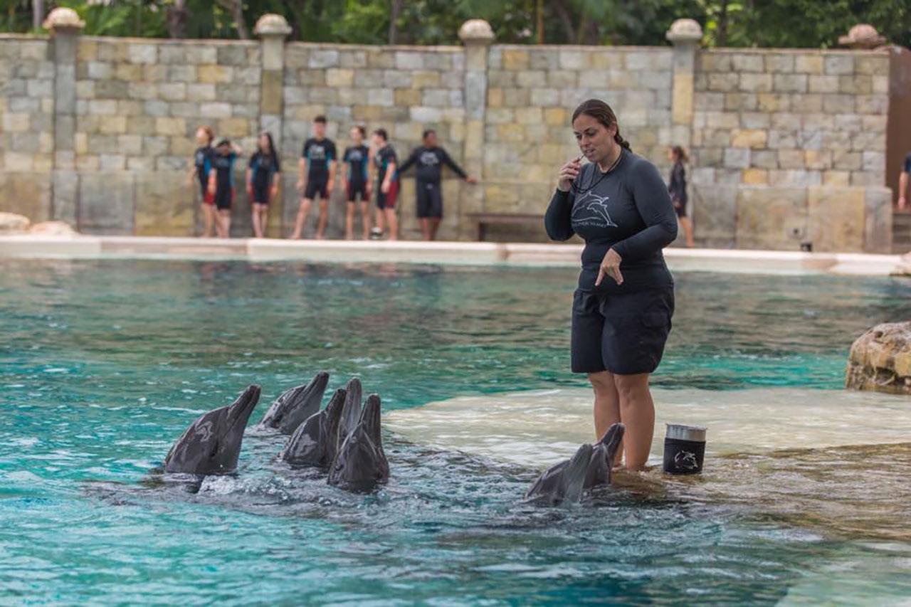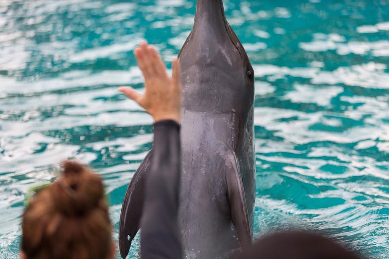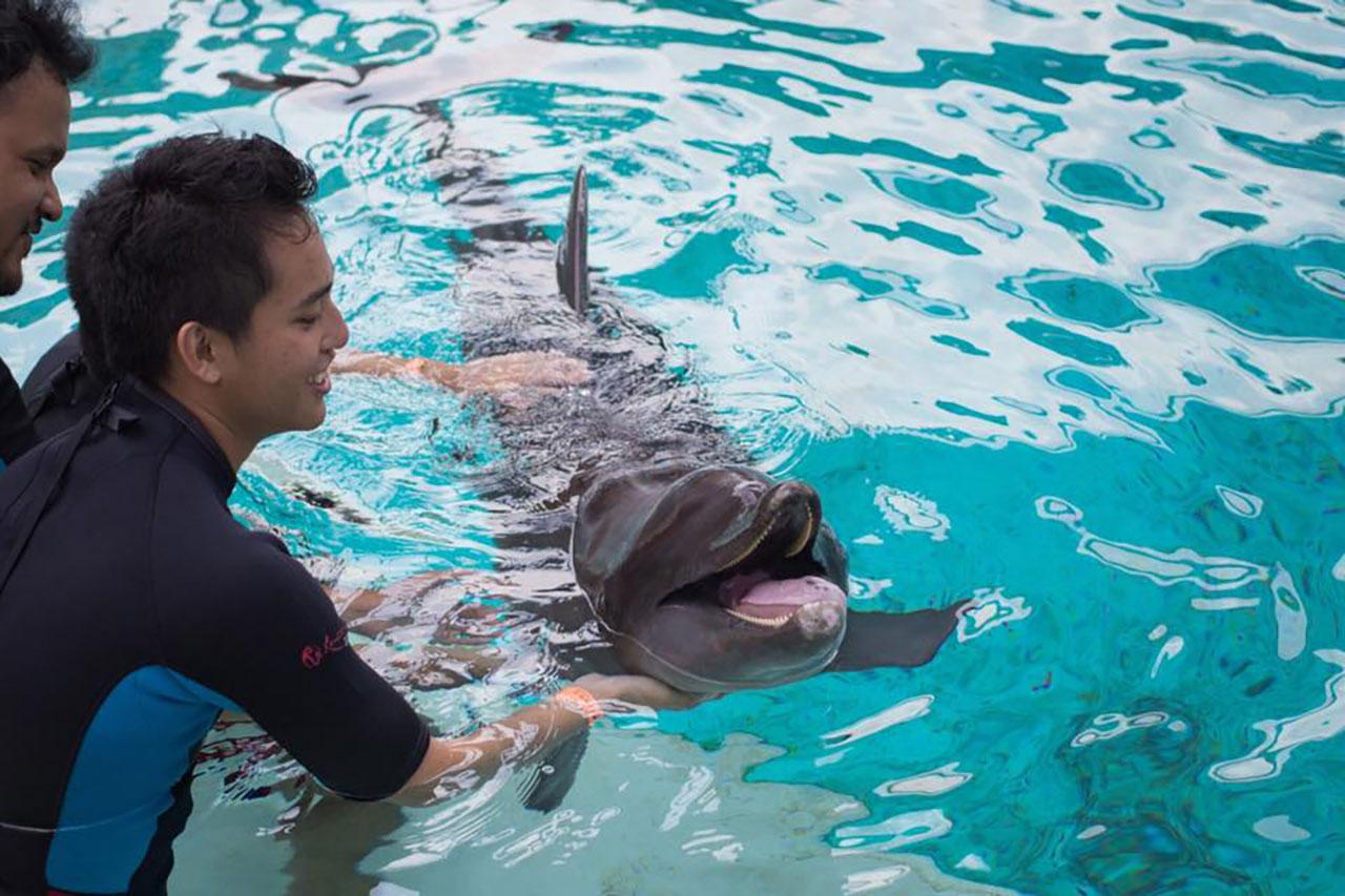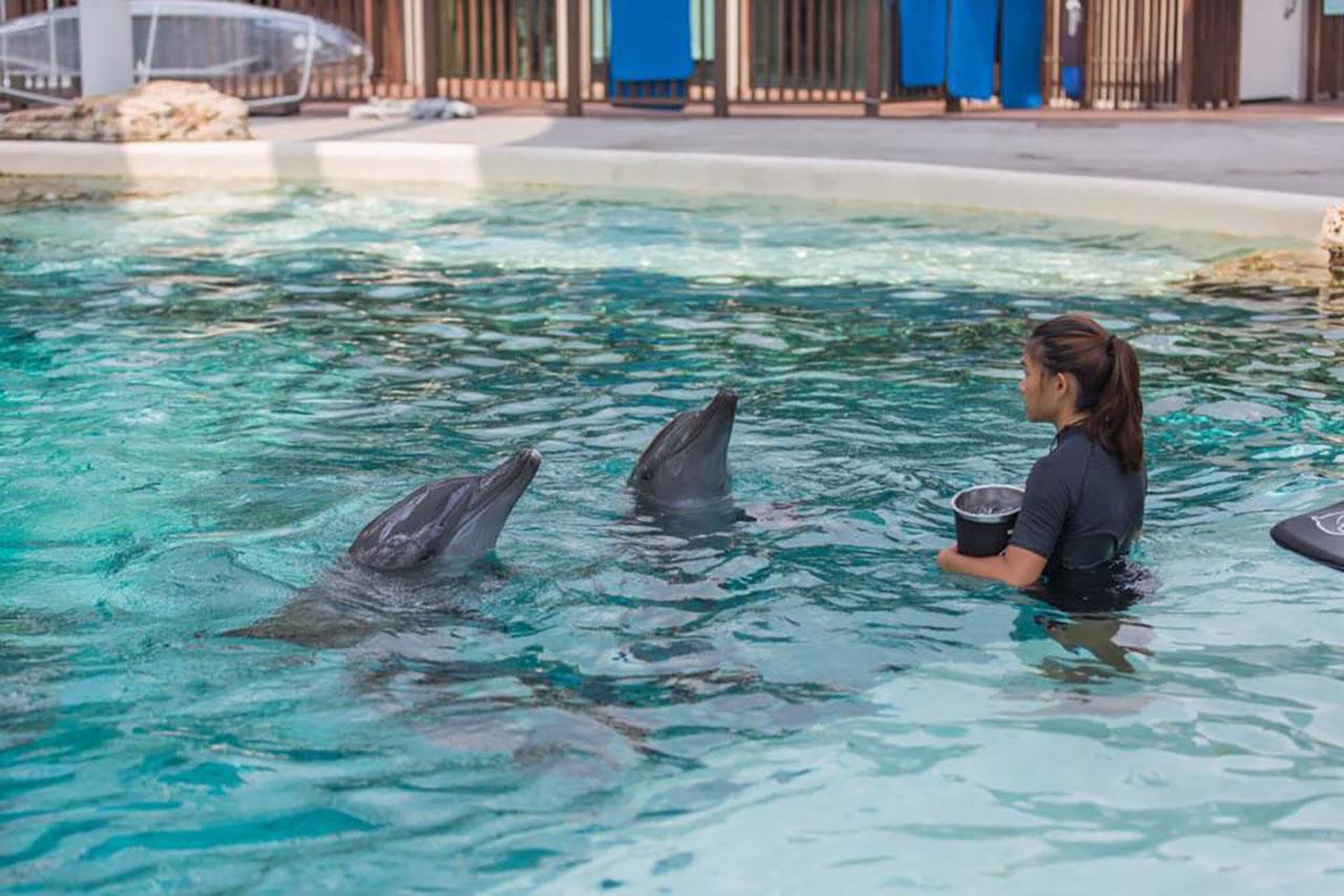 3. ครูฝึกเหล่านี้ให้การดูแลโลมาอย่างพิถีพิถันผ่านองค์ความรู้ในหลากหลายรูปแบบ ผ่านการเรียนการสอน การสำรวจ และการเล่น เพื่อกระตุ้นพัฒนาการ ทั้งด้านสมอง ร่างกาย และจิตใจ อาทิ การสัมผัสทางกายกับครูฝึก และนักท่องเที่ยว การกระตุ้น พัฒนาการผ่านสื่อการเรียนการสอน เช่น โยนของ หรือทำให้จม การมีปฏิสัมพันธ์อย่างต่อเนื่องกับครูฝึกให้โลมามีสุขภาพกาย และใจที่ดี