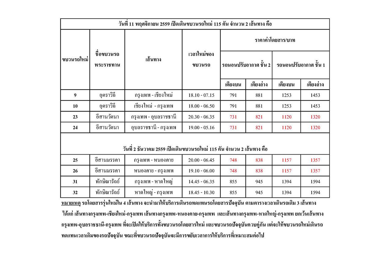 สำหรับ เส้นทาง “อุตราวิถี” กรุงเทพ-เชียงใหม่-กรุงเทพ และ เส้นทาง “อีสานวัตนา” กรุงเทพ-อุบลราชธานี-กรุงเทพ จะเริ่มให้บริการในวันที่ 11 พฤศจิกายน 2559 ประชาชนสามารถจองตั๋วได้แล้ววันนี้