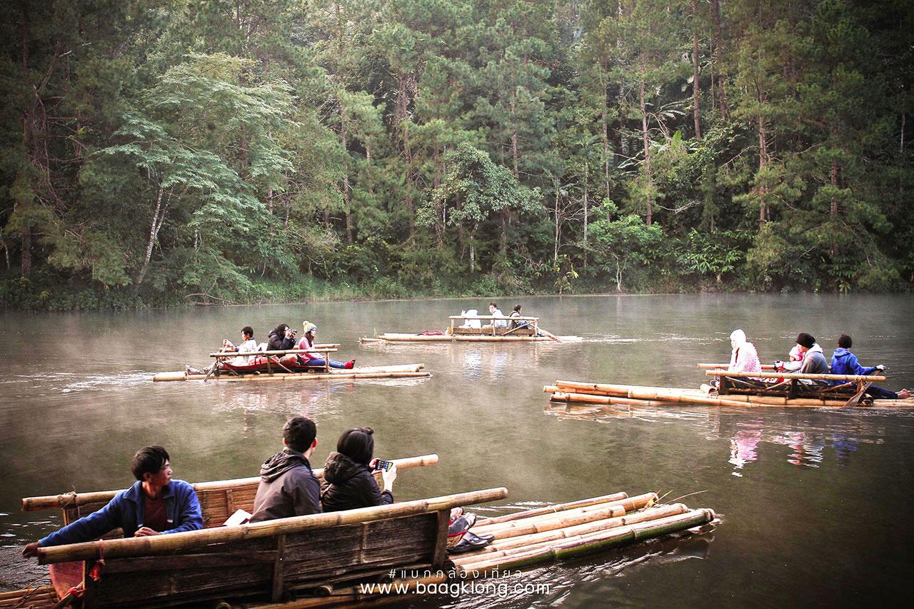 หลายคนอาจจะจำภาพแสงอาทิตย์สาดสะท้อนน่านน้ำ ผสานไอหมอกจางๆ สร้างความประทับใจแก่ผู้มาเยือนทุกครั้ง โดยกิจกรรมที่มีให้ทำก็มากมาย ไม่ว่าจะเป็น การล่องแพชมทัศนียภาพซึ่งถูกโอบล้อมไปด้วยป่าสน สวนดอกไม้ และผลไม้เมืองหนาว เป็นการทัศนาจรแบบใกล้ชิดสายหมอก ที่ลอยล่องขึ้นจากสายน้ำ ให้ความชุ่มฉ่ำกันแบบถึงเนื้อ โดยแพจะเปิดให้บริการตั้งแต่เวลา 06.00 น. เป็นต้นไป