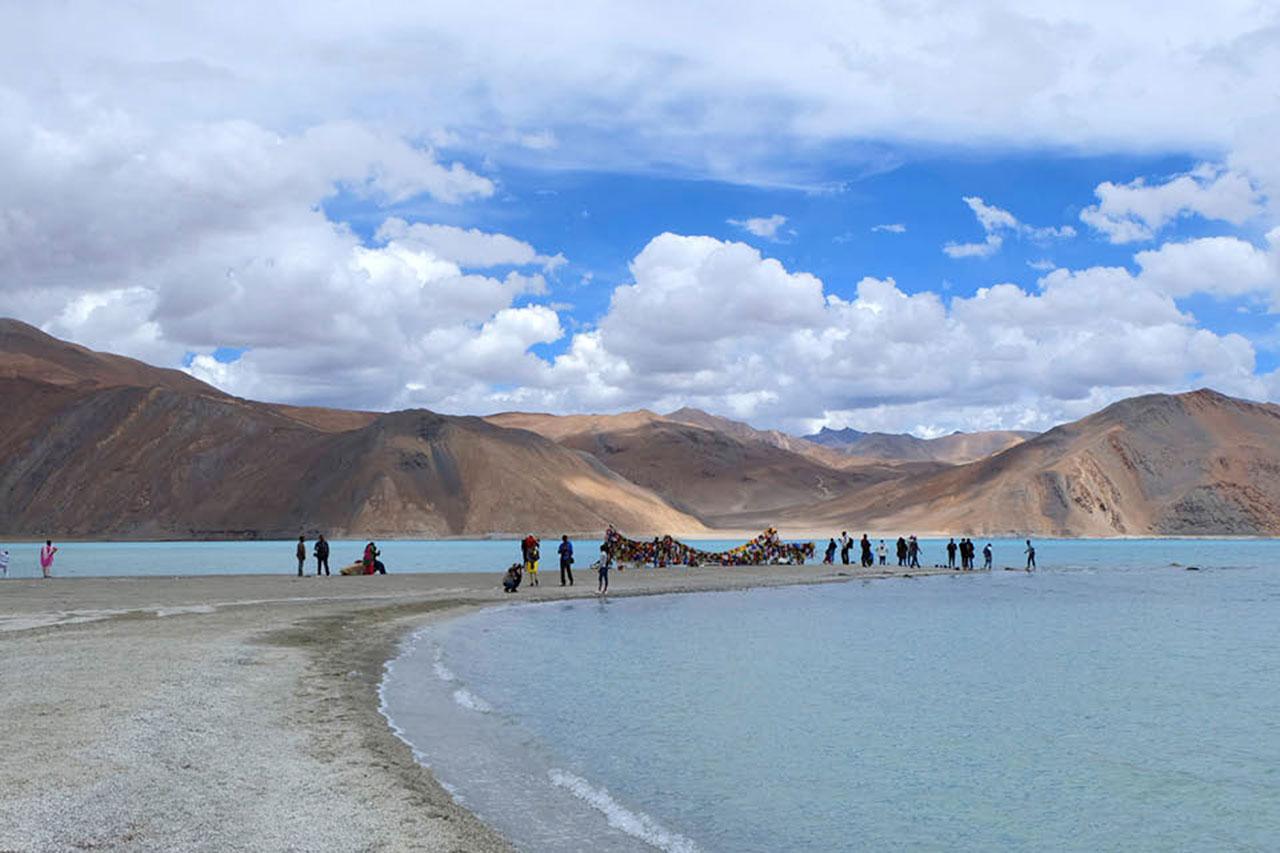 นั่งรถมาสักพักใหญ่ ในที่สุดทะเลสาบสีฟ้าก็ปรากฏให้เห็นอยู่ลิบๆ ตรงหน้า ซึ่งเป็นภาพที่เรียกได้ว่าเหลือเชื่อ เมื่ออยู่ดีๆ ทะเลสาบสุดใหญ่โตก็โผล่ขึ้นมากลางเทือกเขาเอเวอเรสต์ ราวกับมียูเอฟโอยกแอ่งน้ำทั้งหมดมาไว้ที่นี่ ด้วยที่ตั้งของมันทำให้ทะเลสาบแห่งนี้ครองสถิติเป็นทะเลสาบน้ำเค็มที่สูงที่สุดในโลก (4,300 เมตรเหนือระดับน้ำทะเล) ซึ่งแหล่งน้ำของมันมาจากน้ำแข็งและหิมะที่หลงเหลือจากยุคโบราณที่ค่อยๆ  ละลาย ส่วนความเค็มของมันมาจากเหล่าแร่ธาตุที่ไหลมารวมกัน ทะเลมีความยาว 134 กิโลเมตร โดยพื้นที่ 60% อยู่ในเขตประเทศจีน 40% อยู่ในอินเดีย