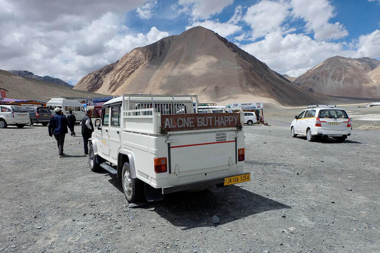ซึ่งนั่นทำให้ผมและเพื่อนร่วมเดินทางอีก 2 คนต้องตัดสถานที่เด็ดๆ ที่เล็งไว้ทิ้งไปหลายแห่ง ยกเว้นก็แต่ทะเลสาบปันกอง (Pangong Tso) เนื่องจากไกด์บุ๊กและรีวิวทุกแห่งล้วนแต่มีคนแนะนำ นอกจากนั้นเอเจนซี่ทัวร์ทั่วทั้งเมืองก็ล้วนแต่ขึ้นป้ายว่า บริการพาไปทะเลสาบปันกอง ด้วยความที่ถูกกรอกหูกรอกตาขนาดนี้ จึงไม่แปลกใจที่เราจะคุยกันว่า เราจะตัดที่เที่ยวที่อื่นทิ้งไปเท่าไรก็ได้ แต่จะตัดทะเลสาบปันกองออกไปไม่ด้ายย (โปรดนึกภาพ meme จากซีรีส์ไดอารี่ตุ๊ดซี่ส์ตามไปด้วย)
