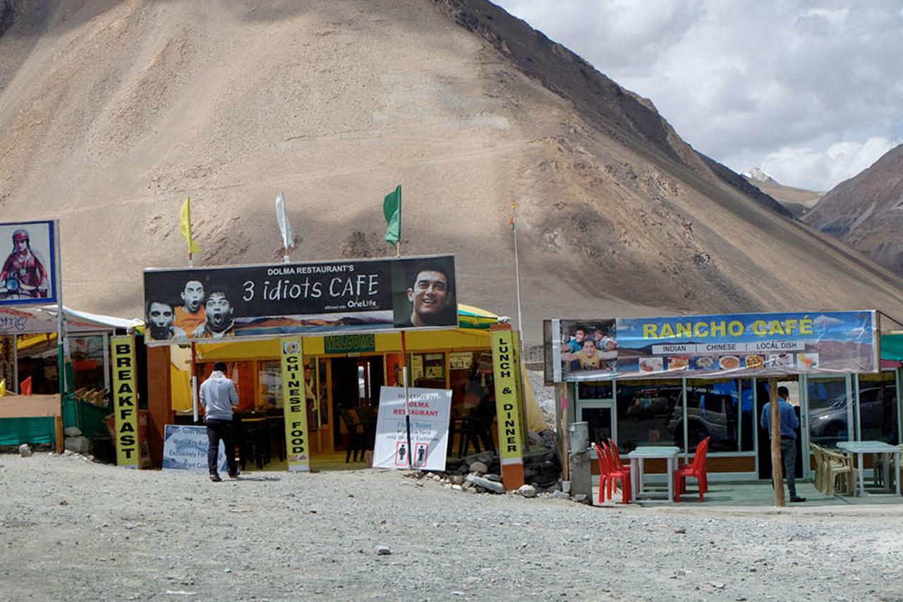 ระหว่างทางเราแวะพักกินโมโม่ (อาหารทิเบตที่เป็นเกี๊ยวแป้งห่อผัก) จิบมาซาล่าไช (ชาอินเดียผสมเครื่องเทศ) ที่ร้านอาหารแถว Chang La Pass – ถนนที่รถวิ่งได้ซึ่งสูงเป็นอันดับ 3 ของโลก ที่ระดับ 17,688 ฟุต หรือ 5,300 เมตรเหนือระดับน้ำทะเล  ด้วยความเมารถบวกกับอยู่ในพื้นที่ที่ออกซิเจนเบาบางจนหายใจไม่ออก – เนื่องจากเป็นพื้นที่ที่อยู่สูงกว่าเมืองเลห์เสียอีก ทำให้ผมวิ่งหาห้องน้ำเพื่อจะเข้าไปอาเจียน แต่พอเปิดเข้าไปเห็นสภาพภายในที่เละเทะและเต็มไปด้วยอาวุธชีวภาพ อาการอยากอาเจียนของผมก็หายเป็นปลิดทิ้ง และยอมขึ้นรถต่อโดยดี