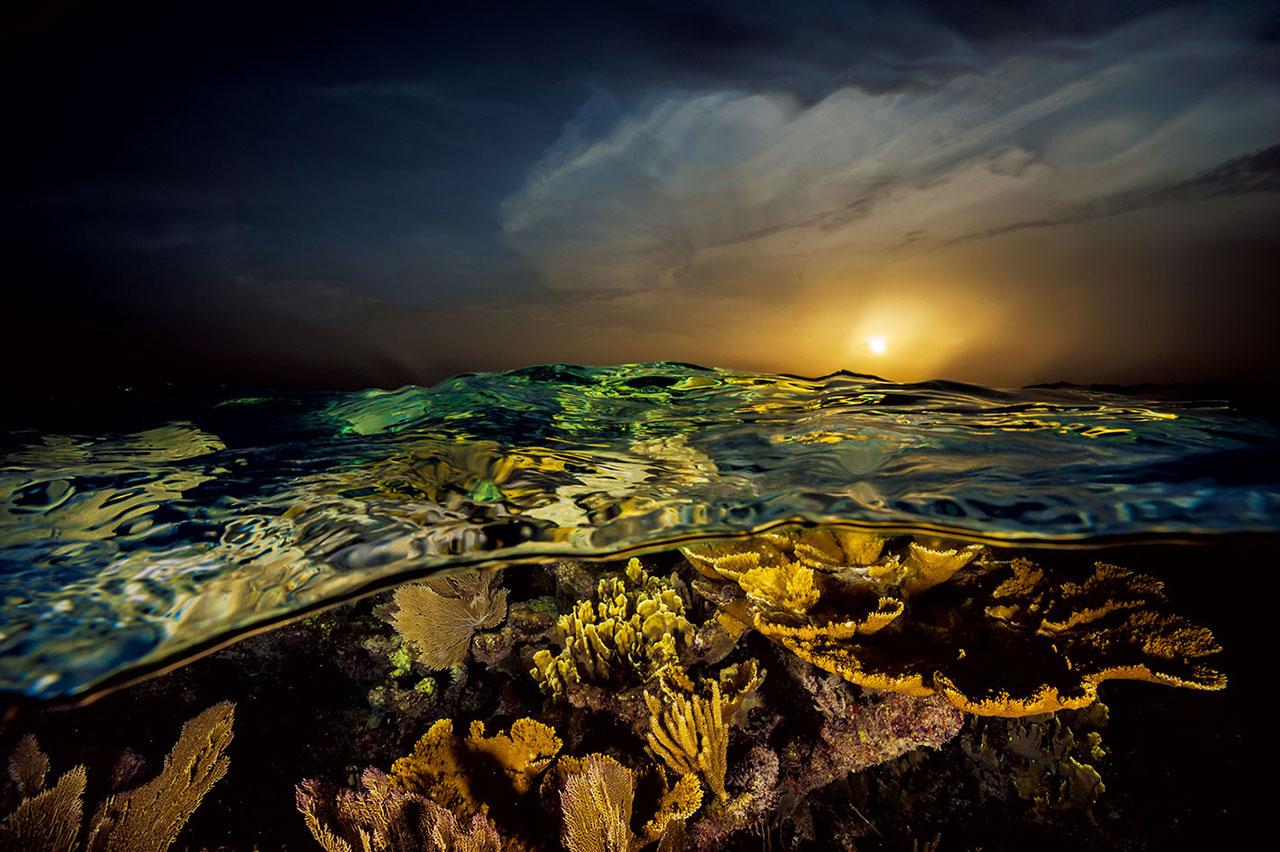 ซึ่งอยู่ในสถานะเสี่ยงต่อการสูญพันธุ์อย่างยิ่ง และลดจำนวนลงมากทั่วทะเลแคริบเบียน เราเข้าไปอยู่ในดงปะการังหนา พลางรู้สึกทึ่งเมื่อเห็นปลากะพงแสมแถบน้ำเงิน และปลากะพงต่อสู้แย่งชิงพื้นที่ท่ามกลาง กิ่งปะการังที่แผ่กว้าง นี่ตรงกับสิ่งที่เราคาดหวังว่าจะเห็น เราหวนคืนสู่โลกแห่งปะการังอันร่ำรวยไปด้วยฝูงปลา เช่นเดียวกับที่ทะเลแคริบเบียน ปรากฏแก่สายตาเราเมื่อกว่าทศวรรษก่อน