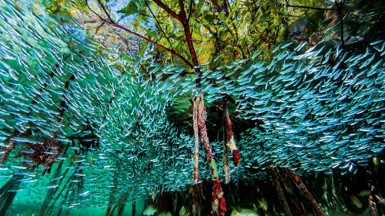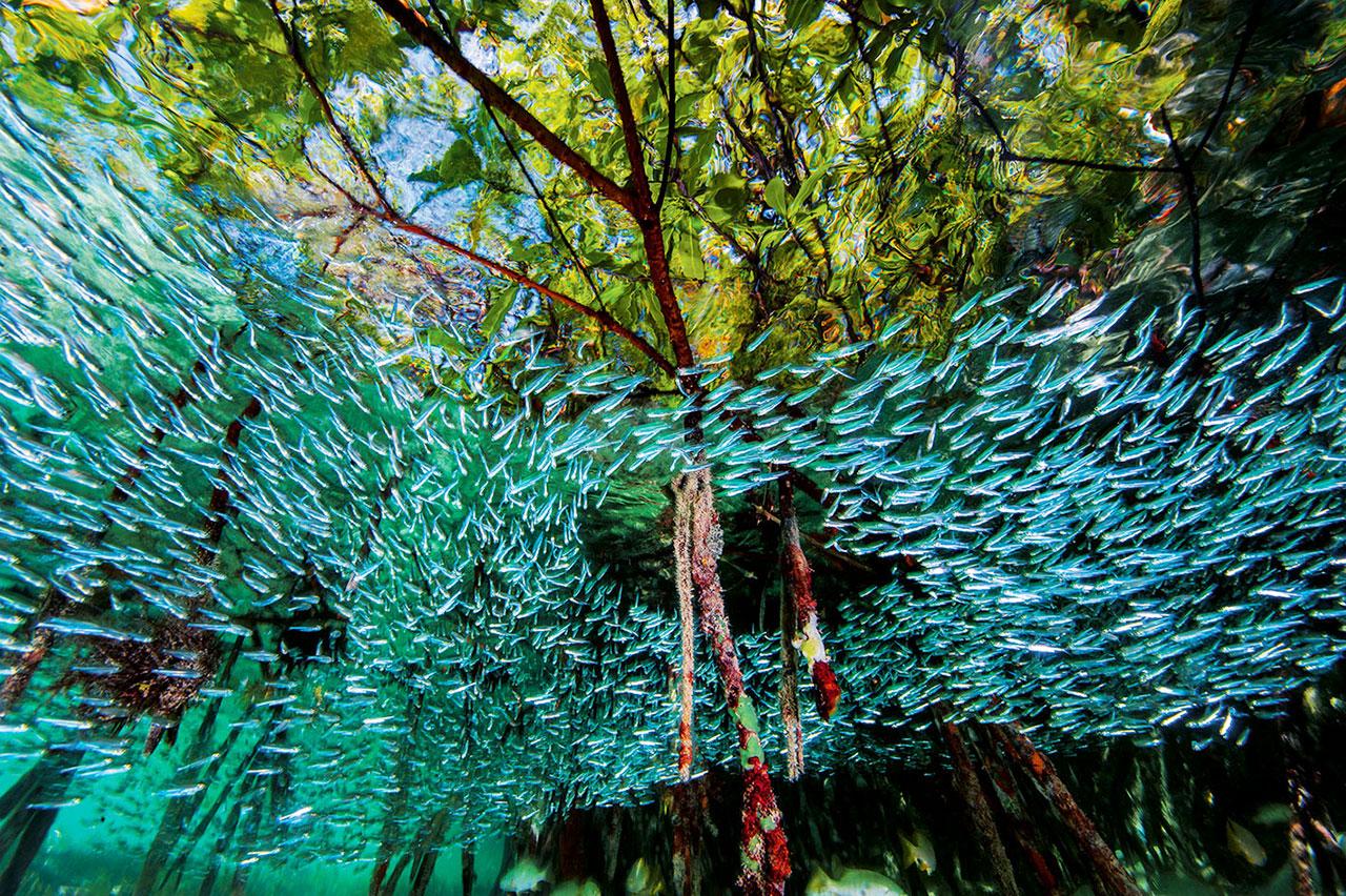 เช้าวันหนึ่ง เราเข้าไปในป่าชายเลน และแหวกว่ายผ่านป่าน้ำขังที่เต็มไปด้วยฝูงปลาข้างเงิน เราออกไปสู่น่านน้ำเปิดเพื่อดำน้ำกับฉลามซิลกีที่ปราดเปรียวหลายสิบตัว ตกค่ำเรากลับไปยังป่าชายเลนอีกครั้ง และดำลงไปในน้ำอันมืดมิด ด้วยไฟฉายกำลังแรงสูง เราแกะรอยตามจระเข้พันธุ์อเมริกันตัวหนึ่ง การได้พบกับเหยื่อมากมายขนาดนั้นและสัตว์นักล่าอันดับสุดยอด ภายในระบบนิเวศเพียงระบบเดียว อย่าว่าแต่ในเวลาเพียงวันเดียว เป็นเรื่องเหลือเชื่อจริงๆ
