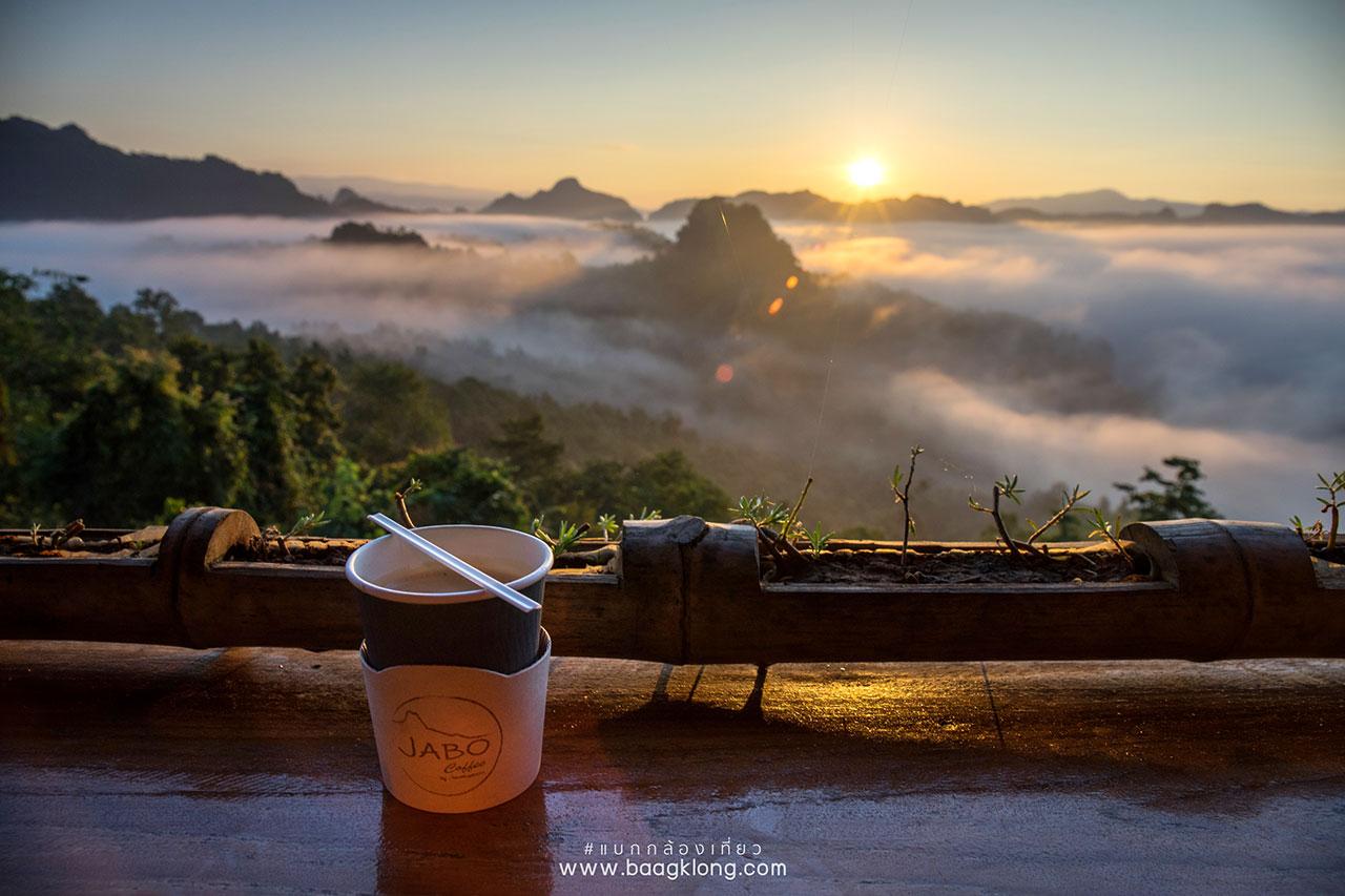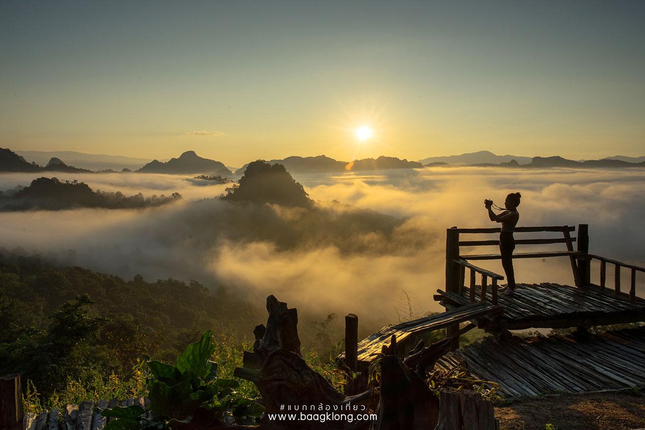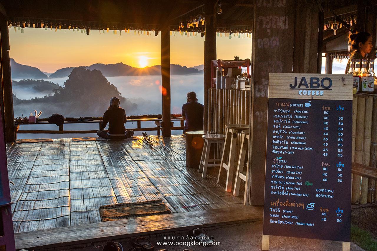 ไฮไลต์ของที่นี่จะมีร้านก๋วยเตี๋ยวห้อยขา และร้านกาแฟขายอยู่บริเวณจุดชมวิว ถ้าจะบอกว่าที่นี่ขายอาหารหลักสิบ แต่วิวหลักล้าน นี่คงไม่ใช่คำพูดที่เกินจริงสำหรับที่นี่แน่นอน ร้านรวงต่างๆ เปิดรอรับนักท่องเที่ยวตั้งแต่ 06.00 น. กันเลยครับ วันนี้ผมได้ลองสั่งก๋วยเตี๋ยวต้มยำ รสชาติใช้ได้เลยครับ ราคาไม่แพงด้วย แค่ 35 บาท แต่วิวเมื่อเช้านี้ ตอนที่เราทานอาหารกันและกาแฟ นั่งชมพระอาทิตย์ค่อยๆ ขึ้น มาพร้อมกับสายหมอกไหลผ่าน มันเหนือคำบรรยายจริงๆ เลยครับ
