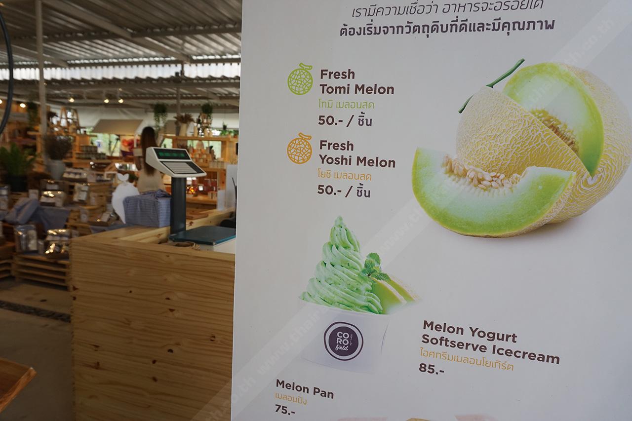 ภายในโคโรมาร์เก็ตมีสิ่งใหม่เพิ่มขึ้นมาด้วย นั่นคือ Melon Bar เป็นสเตชั่นที่จำหน่ายเมล่อนพร้อมทาน และเมนูอร่อยๆ จากเมล่อน ถ้าใครอยากชิมโทมิเมล่อนสดๆ เปลือกสีทอง เนื้อที่เขียว กรอบ หอม หวาน สั่งทานได้ที่นี่เลย สนนราคา 50 บาท และยังมีเมนู Coro Melon Tower เป็นเมล่อนสดครึ่งลูกพร้อมไอศกรีมไซส์จัมโบ้ ส่วน Melon Yogurt Solfserve Ice cream เป็นไอศกรีมโยเกิร์ตเมล่อนรสชาติหวานเปรี้ยวลงตัว