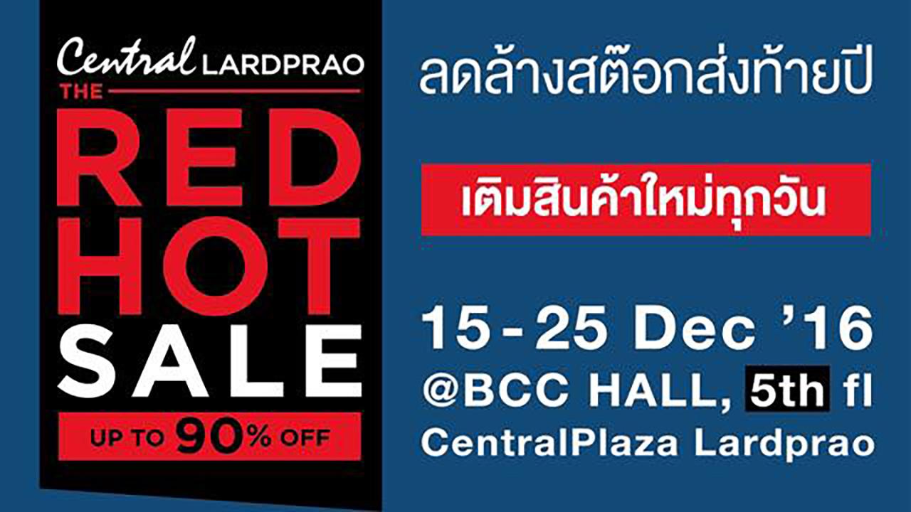 วันนี้ - 25 ธ.ค. 2559 ชวนไปช็อปสินค้าลดราคาแรงๆ ได้ใจไปเลยในงาน “CENTRAL LARDPRAO THE RED HOT SALE” ณ BCC Hall ชั้น 5 ศูนย์การค้าเซ็นทรัลลาดพร้าว ลดล้างสต็อกลดไม่อั้น เติมสินค้าใหม่ทุกวัน ลดส่งท้ายปี สูงสุด 90% แถมยังจะได้พบกับ สินค้านาทีทอง ราคาพิเศษทุกวัน และมีส่วนลดเพิ่มสูงสุด 15% จากบัตรเครดิตที่ร่วมรายการ