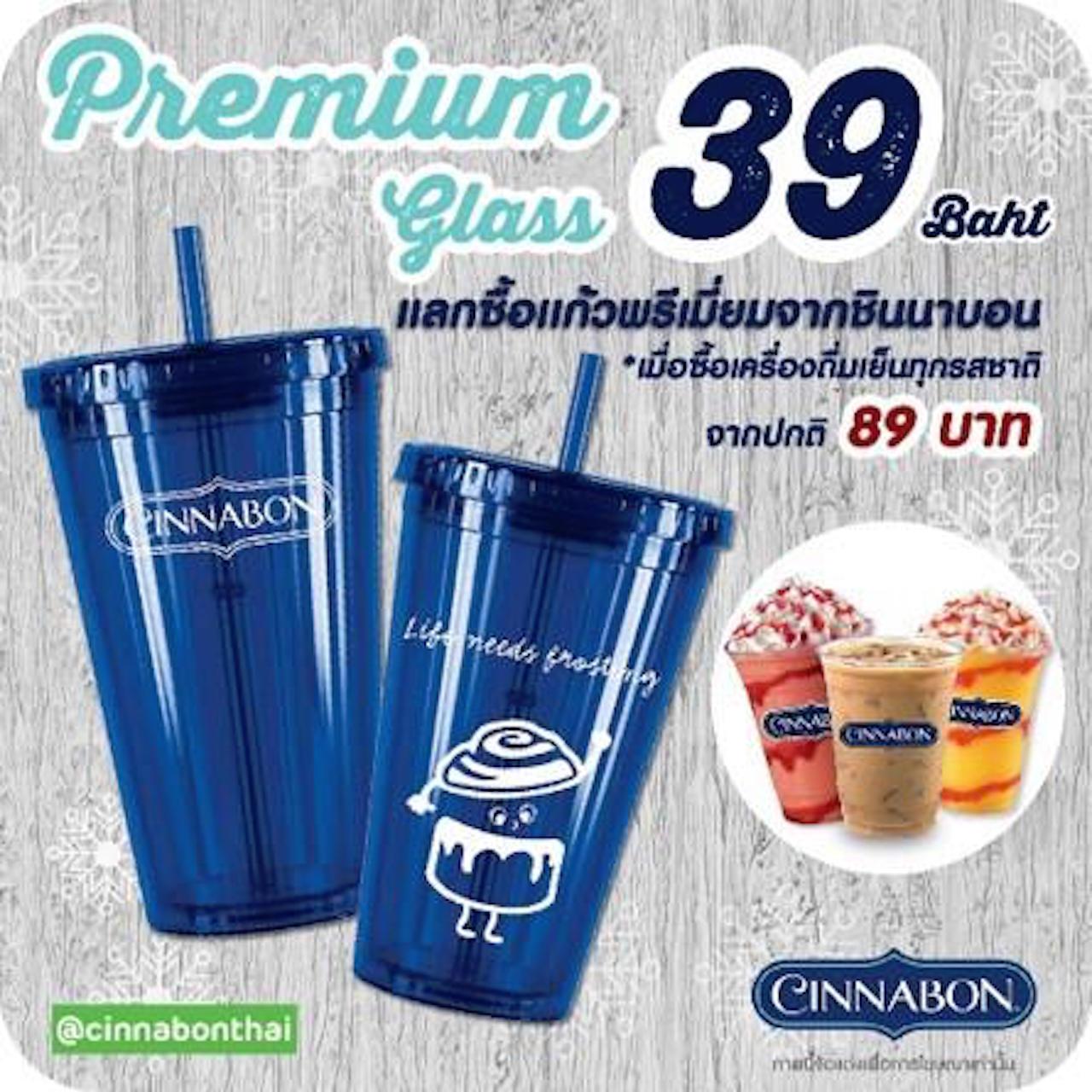 นอกจากนี้ยังมี Cinnabon Premium Glass แลกซื้อแก้วพรีเมียมจากซินนาบอน ราคา 39 บาทเท่านั้น (จากปกติ 89 บาท) เมื่อซื้อเครื่องดื่มเย็นรสชาติใดก็ได้ที่ร้านซินนาบอนทุกสาขา โปรโมชั่นแก้วน้ำลดราคานี้ มอบจนกว่าสินค้าจะหมด