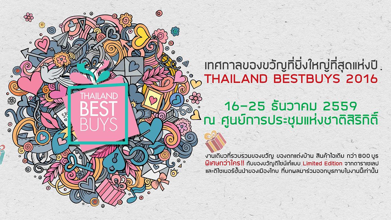 วันนี้-25 ธ.ค. 2559 ชวนมาช็อปของขวัญปีใหม่ในงาน “Thailand Best buys 2016” ณ ศูนย์การประชุมแห่งชาติสิริกิติ์ ภายในงานพบกับ มหกรรมของขวัญ ของตกแต่งบ้าน เฟอร์นิเจอร์ระดับพรีเมียม เสื้อผ้าแฟชั่นแบรนด์ดัง สินค้าความงาม สินค้าเพื่อสุขภาพ อาหารแปรรูป อาหารและเครื่องดื่มพร้อมรับประทาน ของขวัญ ของฝาก ของที่ระลึก งานเซรามิก งานเครื่องเงิน งานเครื่องแก้ว เป็นต้น