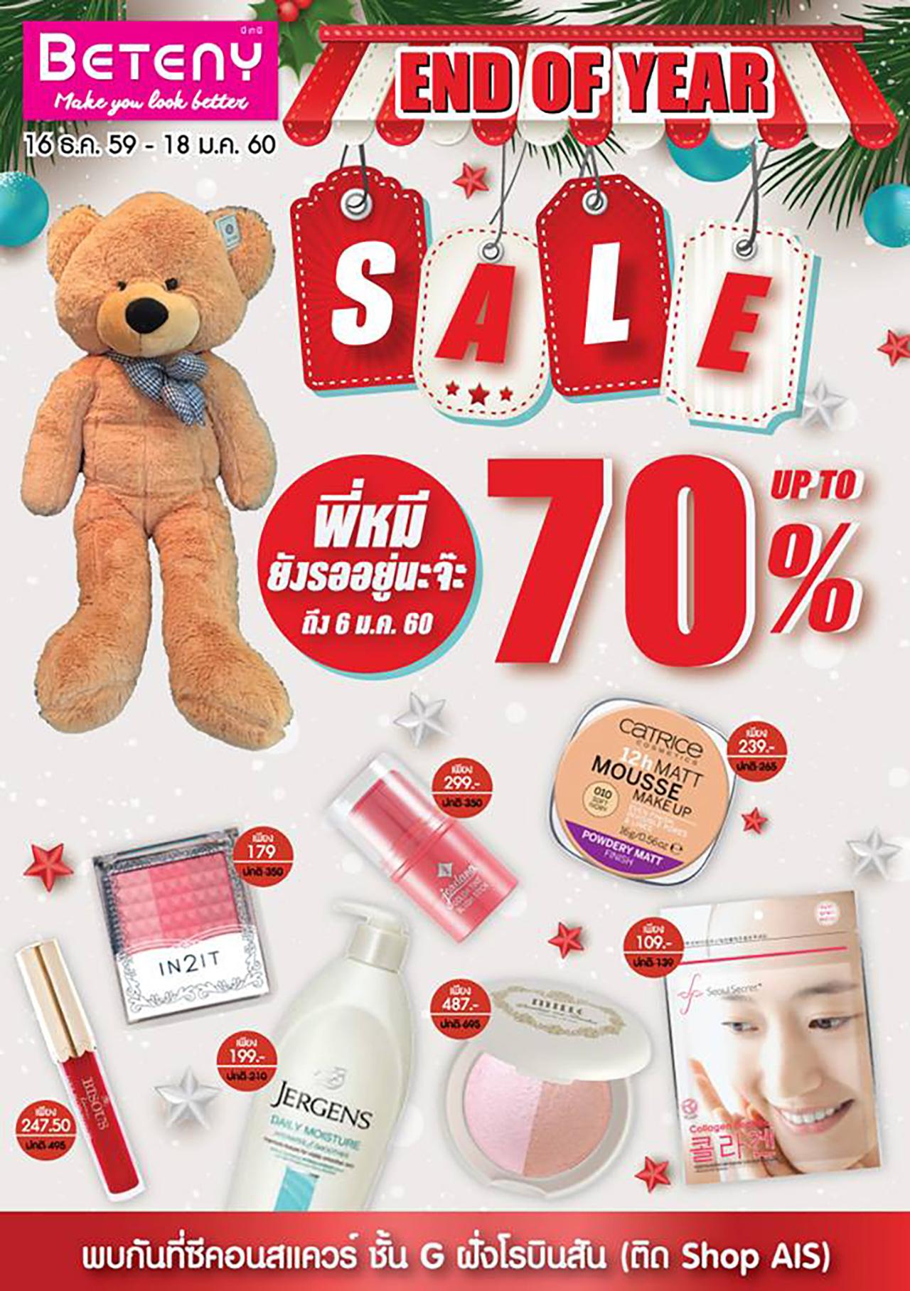 อีกทั้งเมื่อช็อปครบทุก 800 บาท มีสิทธิ์ลุ้นรับหมีตัวใหญ่ไปนอนกอดที่บ้าน ที่ Beteny ชั้น 1 โซนโรบินสัน สอบถามเพิ่มเติม โทร. 0-2721-9936