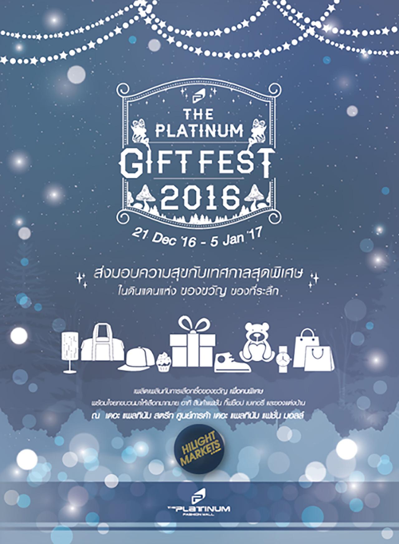 วันนี้ - 5 ม.ค. 2560 ชวนมาช็อปชิลๆ ในราคาสุดคุ้มกับงาน “The Platinum Gift Fest 2016” ณ บริเวณ เดอะ แพลทินัม สตรีท ศูนย์การค้า เดอะ แพลทินัม แฟชั่น มอลล์