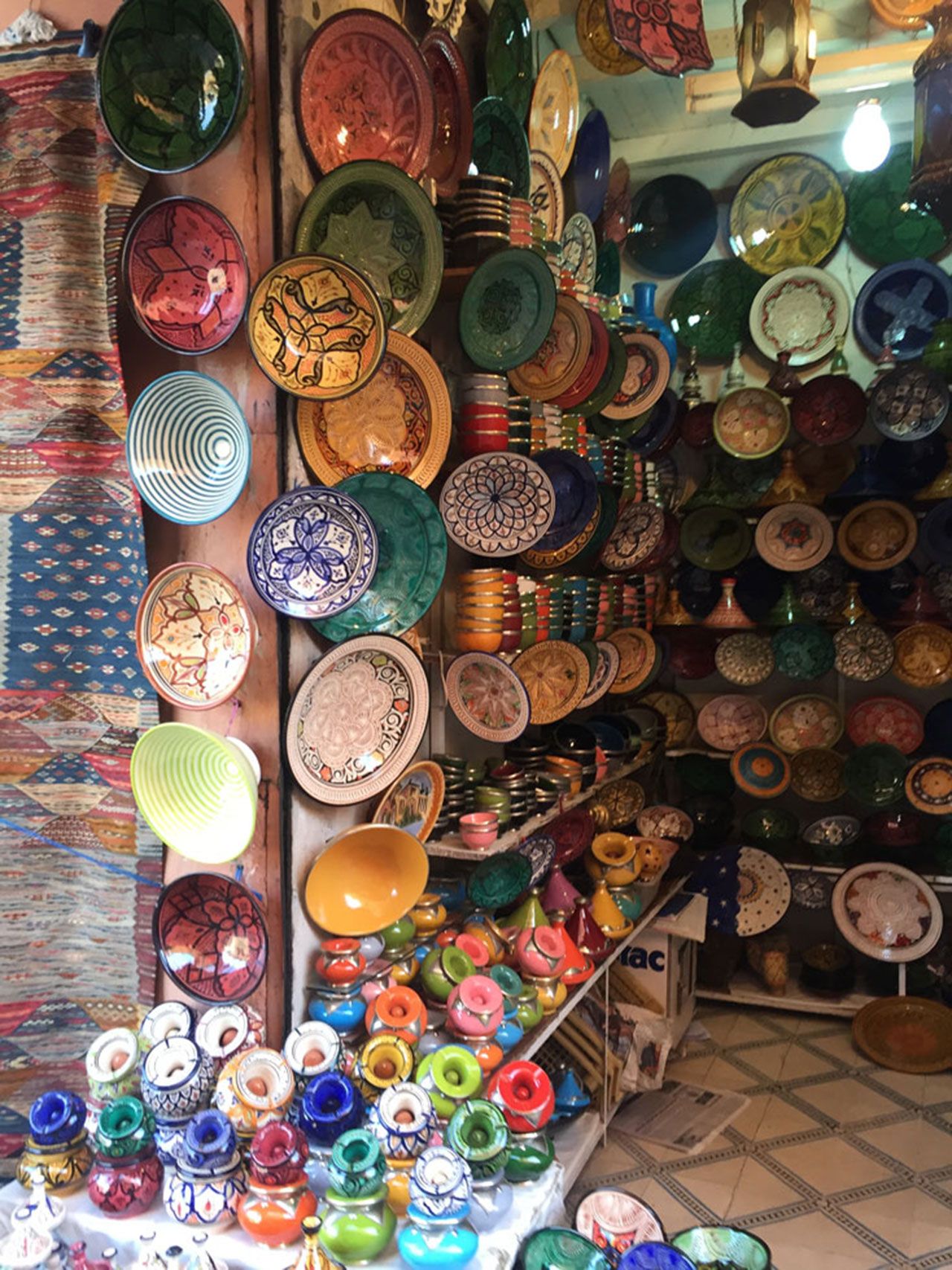 Jemaa el Fna ซึ่งเป็นลานที่ตั้งของตลาดมีความอลหม่านยิ่งกว่าที่เราคิด ทุกอย่างดูตื่นตาตื่นใจ ทั้งข้าวของที่เป็นงานฝีมือ ผ้า ผืนพรม งานเซรามิกแต่ในความเพลิดเพลินนั้นเราต้องระวังการจู่โจมของคนขายไว้ด้วย เพราะเพียงแค่เราทำท่าทีสนใจ หรือพูดถึงของที่เขาขาย เขาจะเข้ามาจูงเราไปดูของในทันทีเหมือนกัน วันนั้นเข็มแค่พูดว่าเฮนน่า สิ่งที่เกิดขึ้นหลังจากนั้นคือคนเพนต์เฮนน่าดึงมือเราไปแล้วเอาตัวบีบซึ่งหัวแหลมเหมือนเข็มมาจิ้มจนเราตกใจ จึงเป็นการเดินที่จะว่าสนุกก็ใช่ แต่จะว่าไม่ใช่ก็ใช่อีกเหมือนกัน