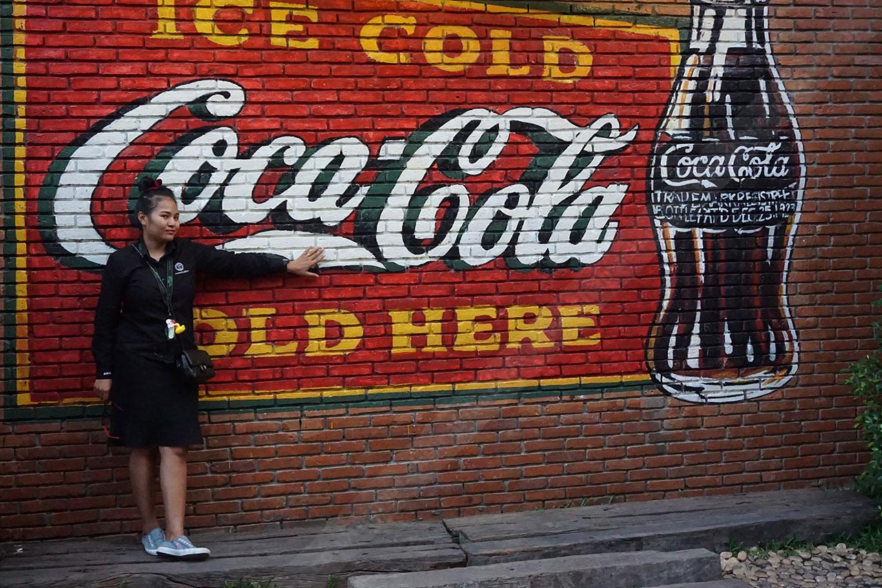ปิดท้ายกับการแชะภาพกับงานศิลปะบนกำแพงในแบรนด์โคคาโคล่า และบางมุมก็มีป้ายโบราณวินเทจของแบรนด์นี้จัดแสดงไว้เช่นกัน ใครที่ชื่นชอบศิลปะแนวสตรีตอาร์ตก็น่าจะปลื้มปริ่มอยู่ไม่น้อย