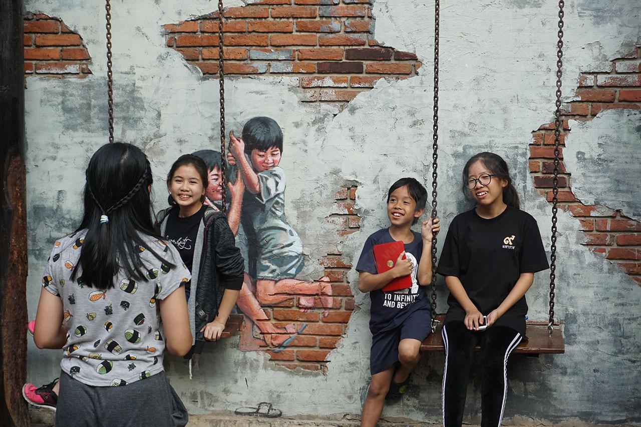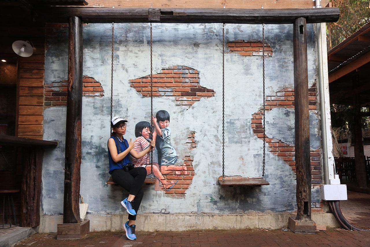 มุมนี้เรียกว่า เป็นมุมมาสเตอร์พีซของบ้านบางเขนเลยก็ว่าได้ ไม่ว่าใครก็จะต้องมาแชะภาพช็อตนี้แน่นอน เพราะมีแบ็กกราวด์เป็นเด็กน้อยน่ารัก ถูกวาดขึ้นบนกำแพงในศิลปะแนวสตรีตอาร์ต และยังมีพร็อพเป็นชิงช้าประกอบติดเข้าไปบนกำแพงนี้ด้วย เรียกแขกได้ดีเลยแหละ