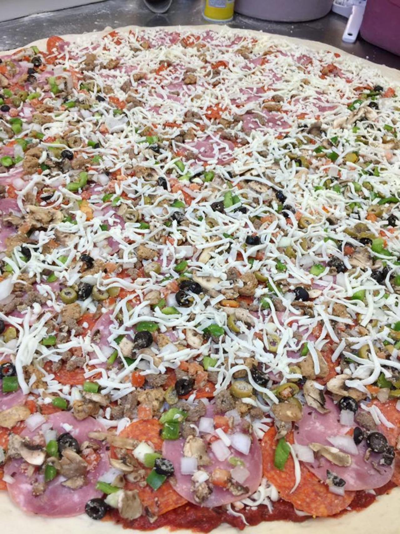 1. พิซซ่าของร้านนี้ เป็นพิซซ่าแป้งบางโรยเครื่องมาแน่นๆ มีด้วยกันหลายขนาด ตั้งแต่ขนาดธรรมดาเหมือนร้านทั่วไป มาถึงขนาดถาดใหญ่ไซส์บิ๊กบึ้ม คือ ขนาดเส้นผ่าศูนย์กลาง 62 นิ้ว, เส้นผ่าศูนย์กลาง 42 นิ้ว , เส้นผ่าศูนย์กลาง 37 นิ้ว
