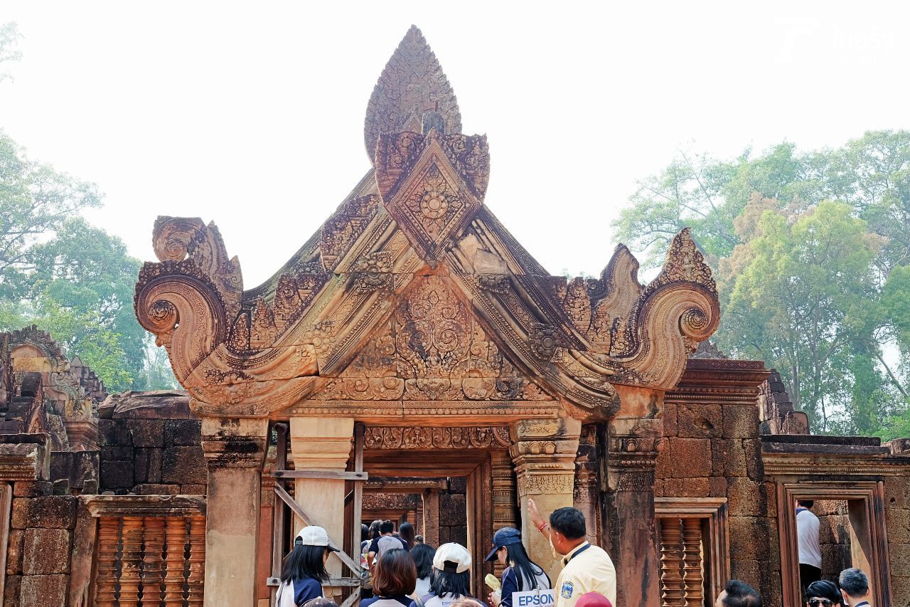 ขึ้นชื่อว่าเป็นปราสาทหินที่สวยงามที่สุดในประเทศกัมพูชา เป็นประสาทที่มีอายุยาวนานกว่า 1 พันปี ปราสาทบันทายศรี เป็นเทวสถานขนาดเล็กแต่มีความงดงามด้านลวดลาย การสลักลวดลายมีความอ่อนช้อย ลายชัด มีชีวิตชีวา ตามความบอกเล่าของไกด์ เชื่อว่าหลายคน หากเช็กอินปราสาทหลายๆ แห่งในกัมพูชามาแล้ว ปราสาทบันทายศรีก็มีมนต์เสน่ห์ไม่น้อยที่จะดึงดูดให้เราเข้าไปเที่ยวชม และกลับมาอีกอย่างแน่นอน
