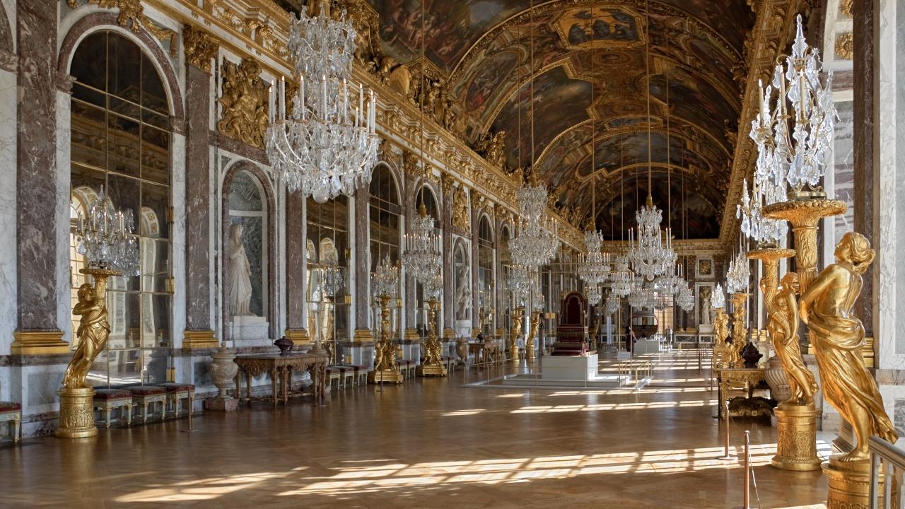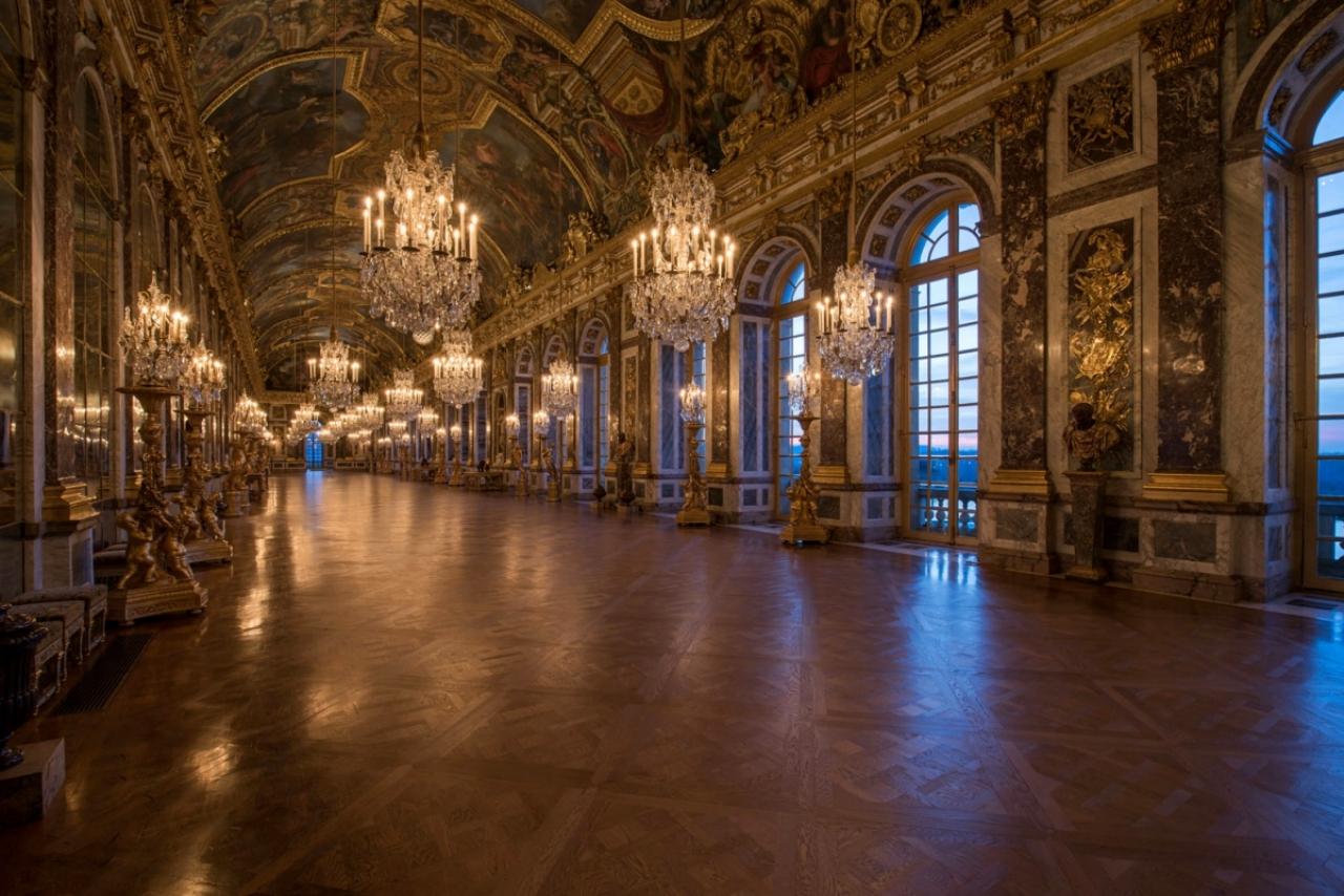 ห้องนี้พระเจ้าหลุยส์ที่ 14 ทรงทำการก่อสร้างเอง ภายในห้องประกอบด้วยกระจกยักษ์ 17 บาน เปิดออกแล้วจะเห็นสวนแวร์ซายอันสวยงาม