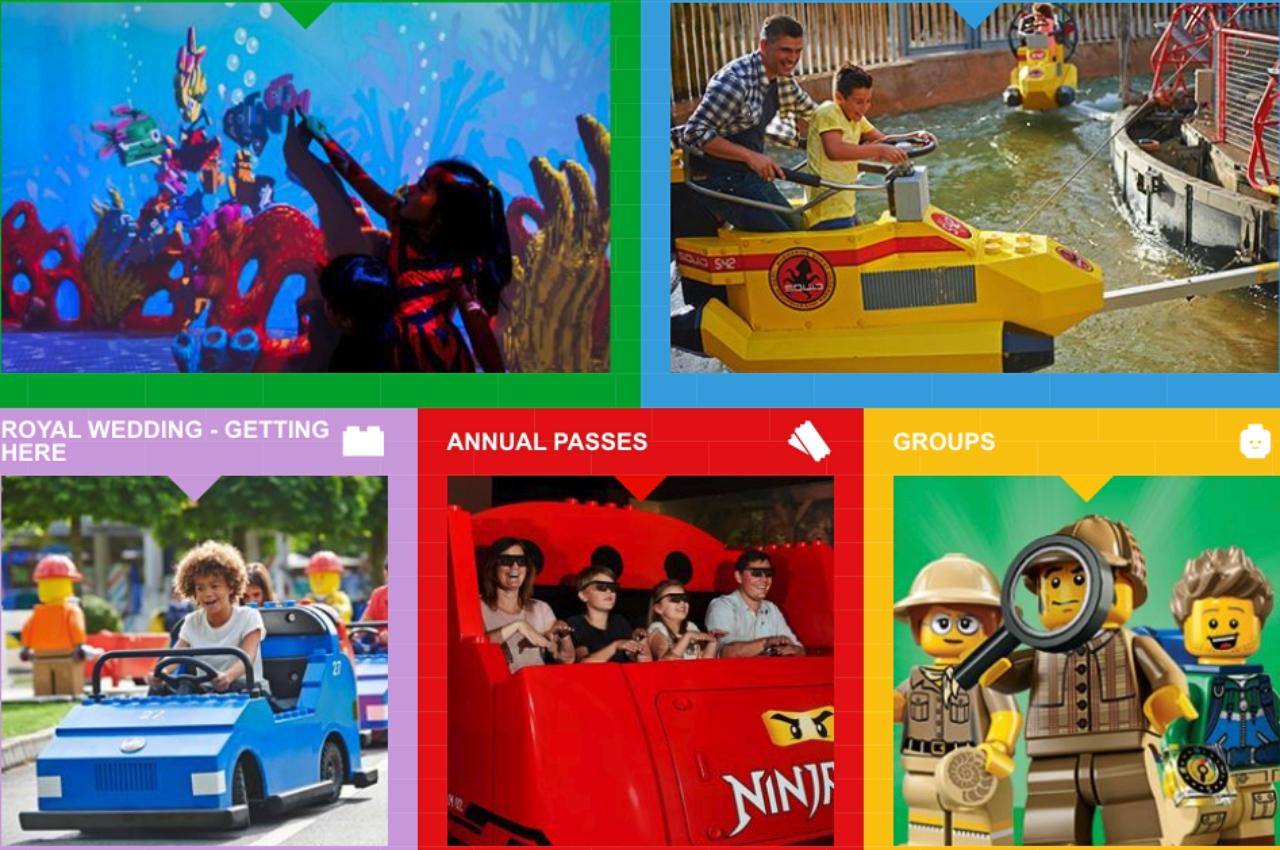 อีกทั้งยังมีบริการนั่งเรือดำน้ำอันน่าทึ่งในโซน Atlantis Submarine Voyage ชมสถานที่ท่องเที่ยวยุโรปที่มีชื่อเสียง เช่น ลอนดอนอายและวังบักกิงแฮมใน Miniland หรือปล่อยให้เด็กๆ สร้างสิ่งก่อสร้างและยานพาหนะด้วย LEGO ในแบบของตัวเอง