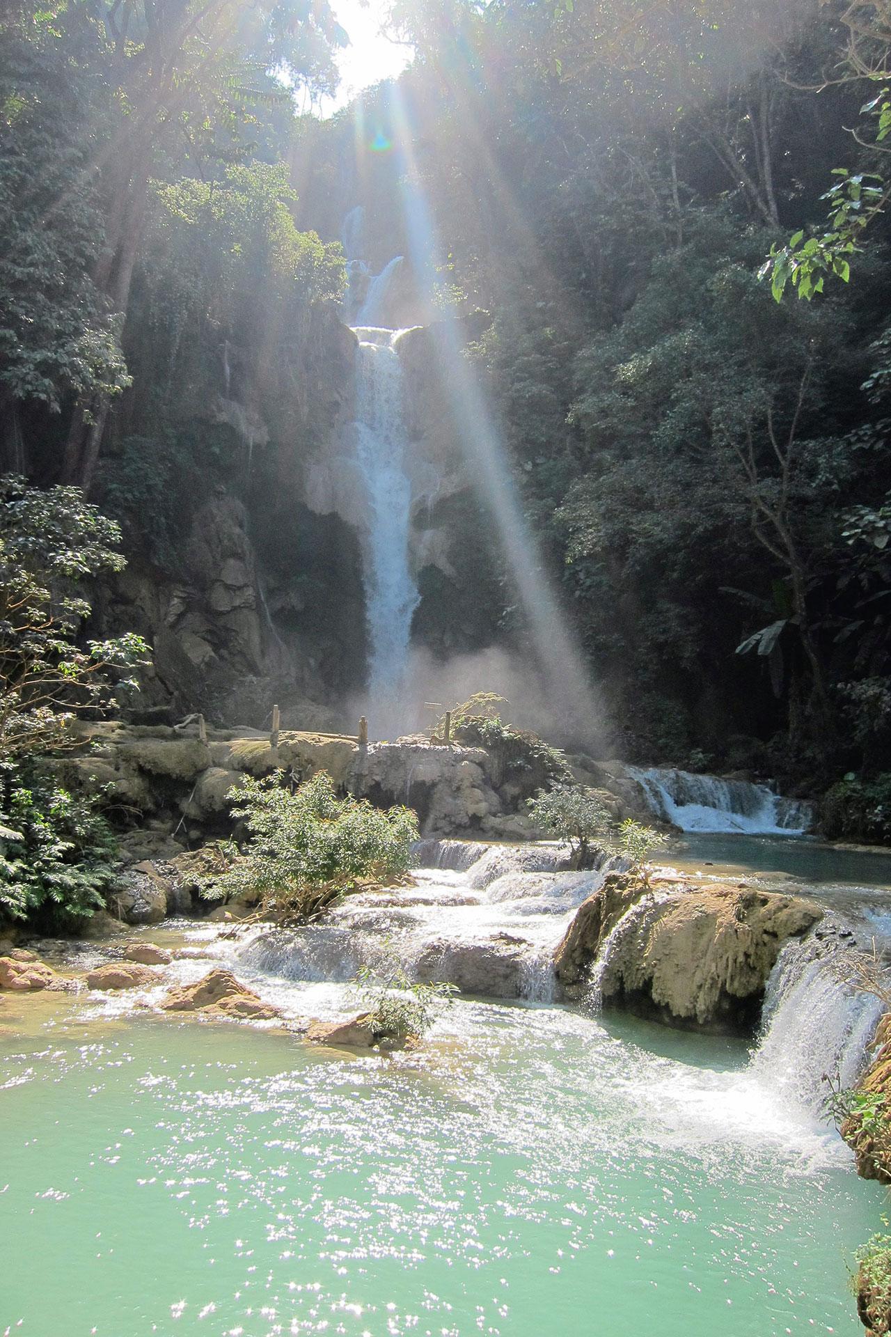 น้ำตกชื่อดังของชาวยุโรป ที่ตั้งอยู่ไกลเมืองหลวงพระบางมากนัก เพราะเป็นน้ำตกหินปูน สูง 75 เมตร และมี 4 ชั้น ความสวยงามนี่ไม่ต้องบอกเล่า ขนาดว่า...แค่จินตนาการก็ฟินแล้ว ด้วยสภาพความร่มรื่น น่าเล่นน้ำเป็นที่สุด เพราะน้ำในน้ำตกมีสีเขียวมรกต