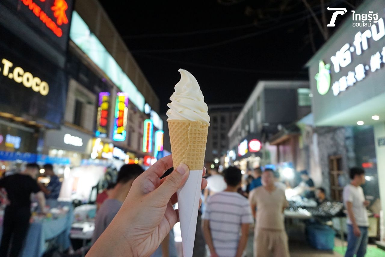 จริงๆ เราก็อยากซื้อของกินมารีวิวให้ดูนะ แต่บังเอิญว่าทานมื้อเย็นมาซะแน่นพุง เลยไปจบที่ไอศกรีมแทนละกัน ชิมเข้าไปคำแรก อืม...ไอศกรีมกะทิบ้านเราอร่อยกว่าเยอะ!