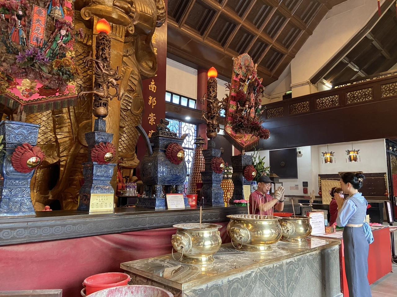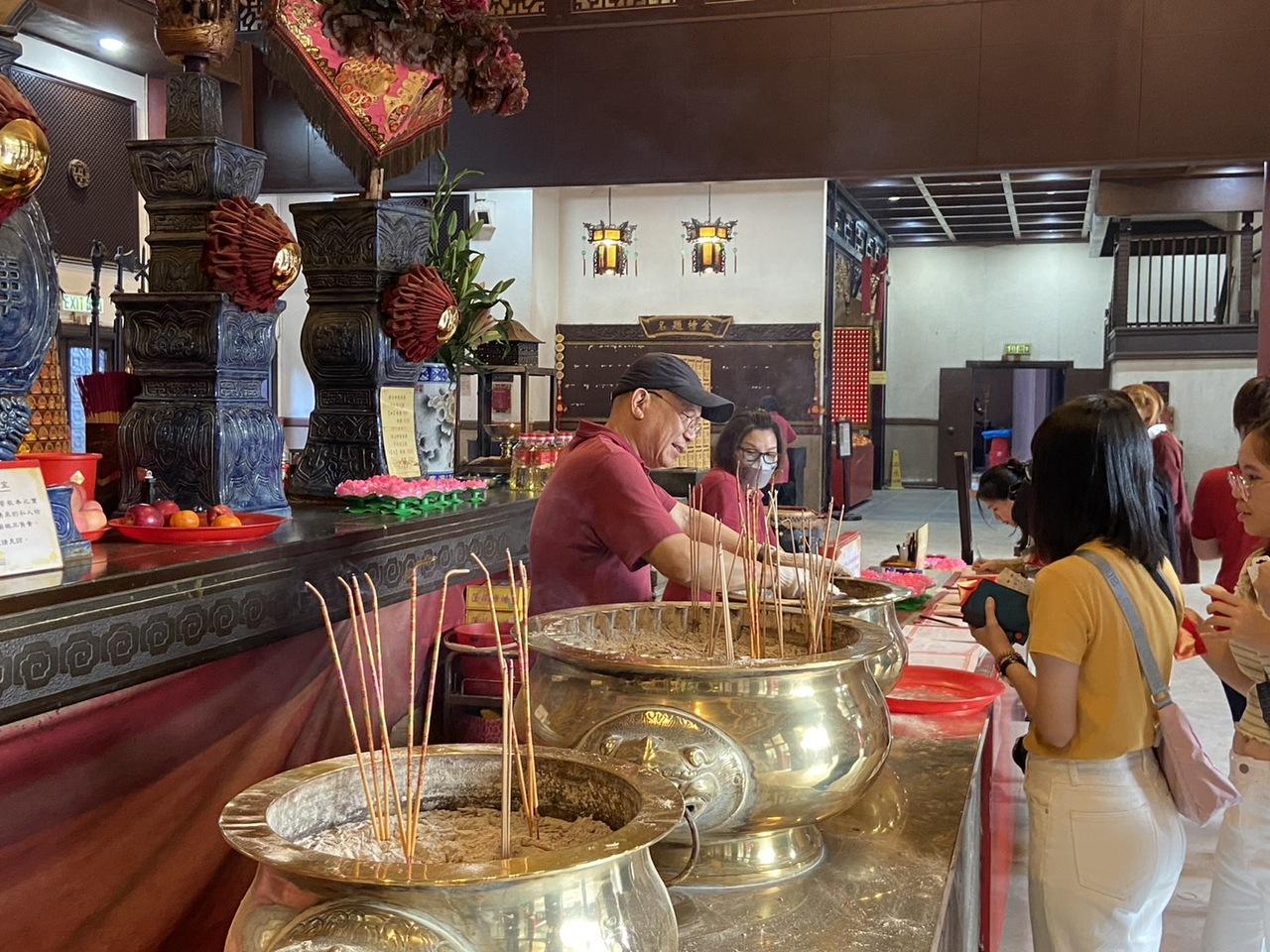 4. นำธูปที่เหลือปักลงบนกระถางกลางแจ้ง บริเวณหน้าทางเข้าศาลเจ้าองค์แชกง โดยเหลือไว้ 3 ดอก