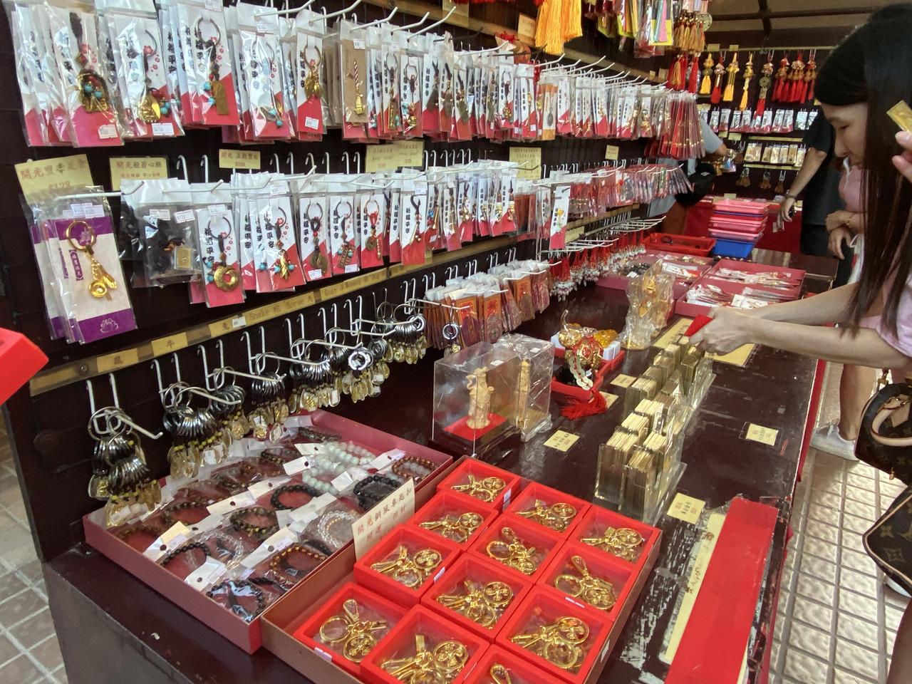 บริเวณหน้าวัดยังมีร้านขายของเครื่องรางนำโชคอยู่มากมาย ซึ่งเป็นที่นิยมอย่างมากในการเช่าบูชา หรือนำไปเป็นของฝากที่มีให้เลือกได้หลากหลาย