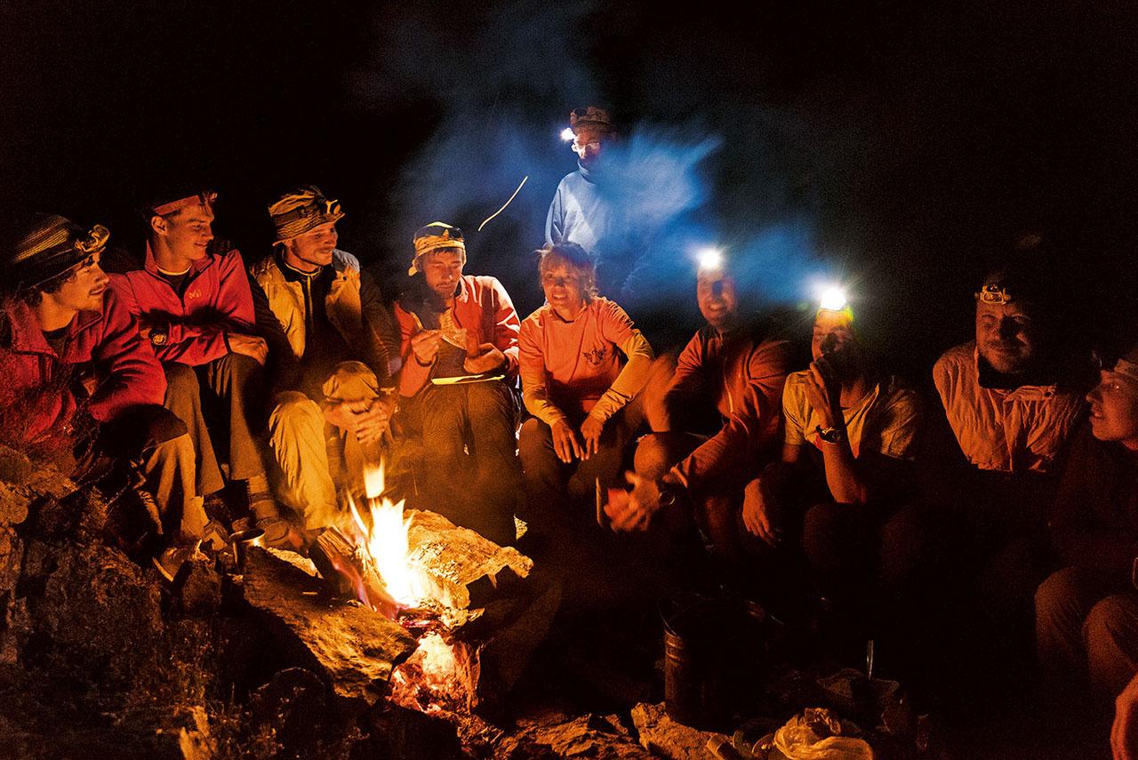 ดนตรีและเหล้ายาไหลรินระหว่างที่ทีมสำรวจผ่อนคลายอยู่บนภาคพื้นดิน นักสำรวจถ้ำพูดต่างภาษากัน ทั้งรัสเซีย อิตาลี ฮีบรู และเยอรมัน แต่ในถ้ำดาร์กสตาร์ซึ่งพวกเขานอนร่วมถุงนอนกันเพื่อความอบอุ่นนั้น ทุกคนเป็นน้ำหนึ่งใจเดียวกัน