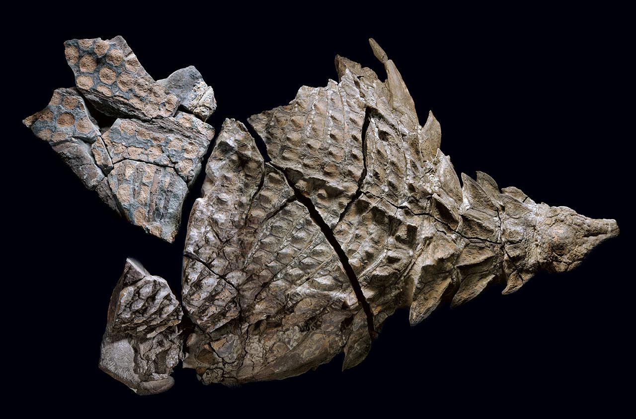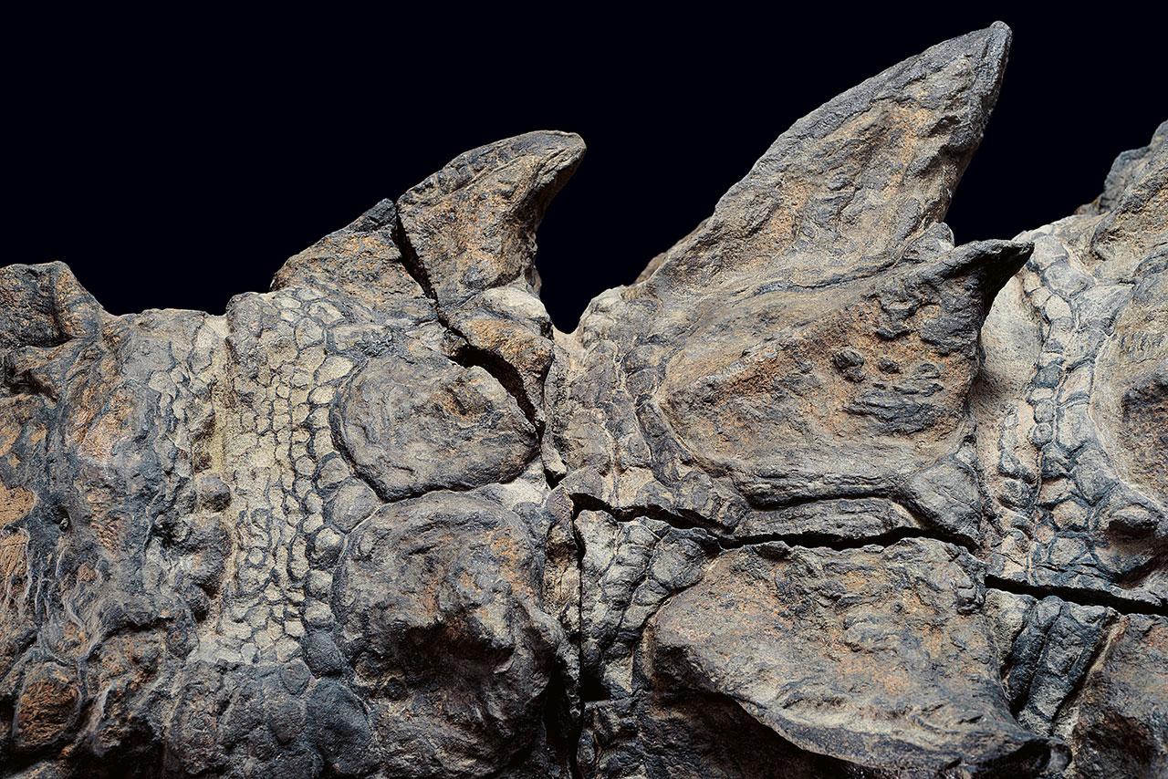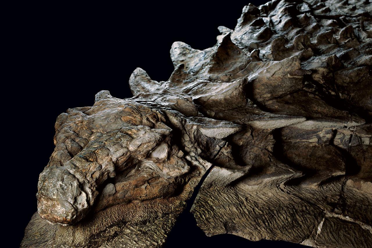 เมื่อมองแวบแรก ก้อนหินสีเทาที่นำมาประกอบขึ้นใหม่ดูเหมือนประติมากรรมไดโนเสาร์ยาว 2.75 เมตร แผ่นเกราะคล้ายกระดูกเป็นชิ้นๆ ต่อกันปกคลุมช่วงคอและหลัง และมีวงกลมสีเทาเป็นเส้นขอบของเกล็ดแต่ละเกล็ด คอของมันโค้งไปทางซ้ายอย่างสวยงาม ราวกับกำลังชูคอขึ้นไปหาพืชบางชนิดที่น่าเอร็ดอร่อย แต่นี่ไม่ใช่ประติมากรรมเสมือนจริง มันคือไดโนเสาร์ตัวจริงซึ่งกลายเป็นหินตั้งแต่จมูกจนถึงสะโพก