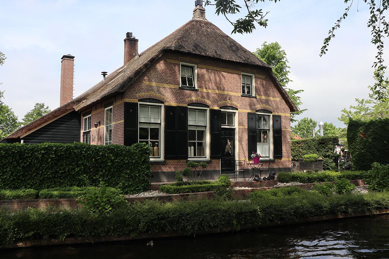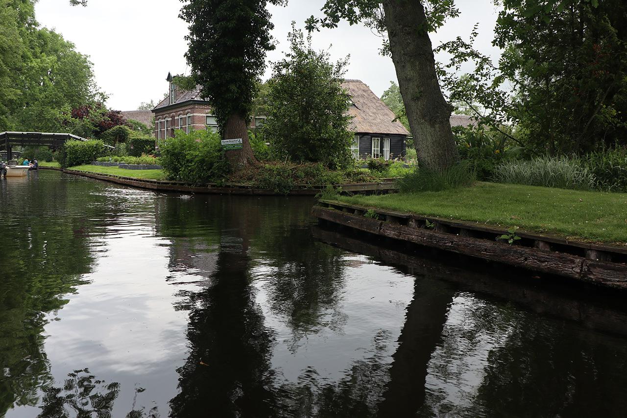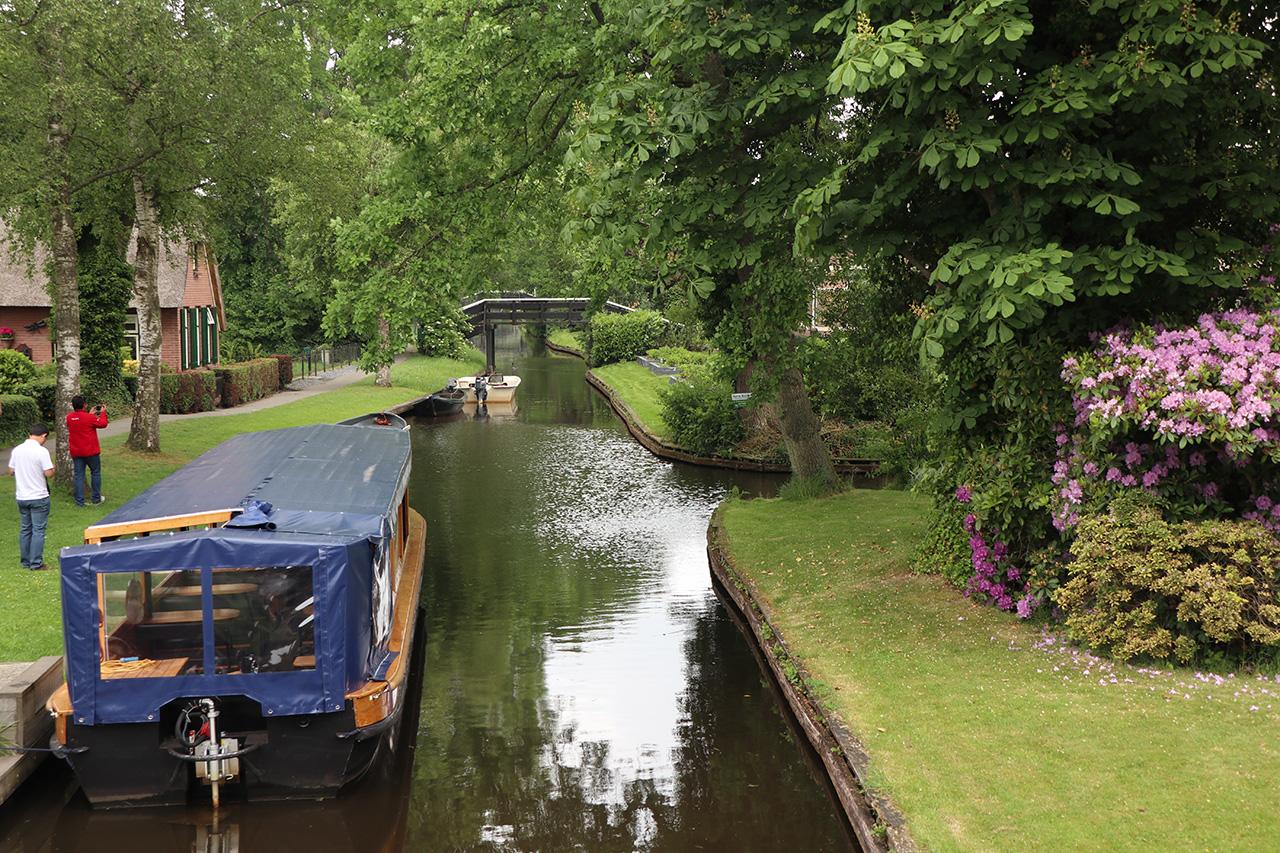 ก้าวลงเรือท่องเที่ยวขนาดบรรจุคนได้สัก 20 กว่าคน เห็นว่าเรือลำนี้ใช้พลังงานสะอาดด้วย เพราะเสียงค่อนข้างเงียบ ไม่ทำลายความสงบของหมู่บ้านแม้แต่น้อย สองข้างทาง เขียวสดใสสบายตา ตลอด 10 กิโลเมตรริมลำคลอง บ้านทุกหลังดูงดงามตามแบบฉบับชาวดัตช์ หน้าบ้านมีสนามหญ้าผืนใหญ่หน้าบ้าน แต่งแต้มด้วยดอกไม้เล็กๆ หลากสี ดูแล้วสดชื่นมากๆ ค่ะ