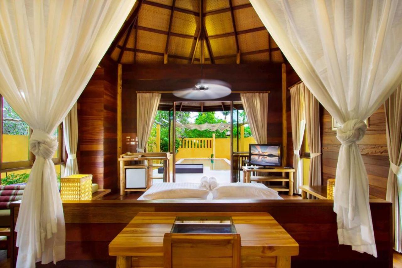 ที่นี่ให้ความสำคัญกับการออกแบบตกแต่งบ้านพักและห้องน้ำทั้ง 41 หลัง ท่ามกลางแมกไม้ แถมยังมีชายหาดทรายสีขาวบริสุทธ์ยาวถึง 10 กม. ที่นี่ยินดีต้อนรับน้องหมาพันธุ์เล็กเข้าพักได้ คิดเพิ่มตัวละ 500 บาท มีค่ามัดจำทำความสะอาดประมาณ 3,000 บาท