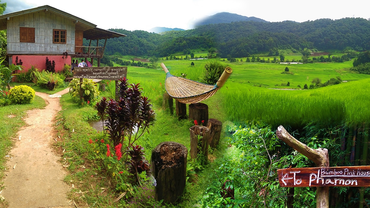 ขอเกริ่นก่อนว่า ‘แบมบูพิงค์เฮาส์’ เป็นบ้านพักท่ามกลางหุบเขาและนาข้าวขั้นบันได และเป็นสถานที่พักผ่อนหย่อนใจในรูปแบบ “การท่องเที่ยวเชิงนิเวศ” ที่สร้างโดยชาวกะเหรี่ยงปกาเกอะญอ บ้านผาหมอน อ.จอมทอง จ.เชียงใหม่ ที่นี่ให้บริการแบบโฮมสเตย์ มีชาวบ้านใช้ชีวิตอยู่ในหมู่บ้านจริงๆ
