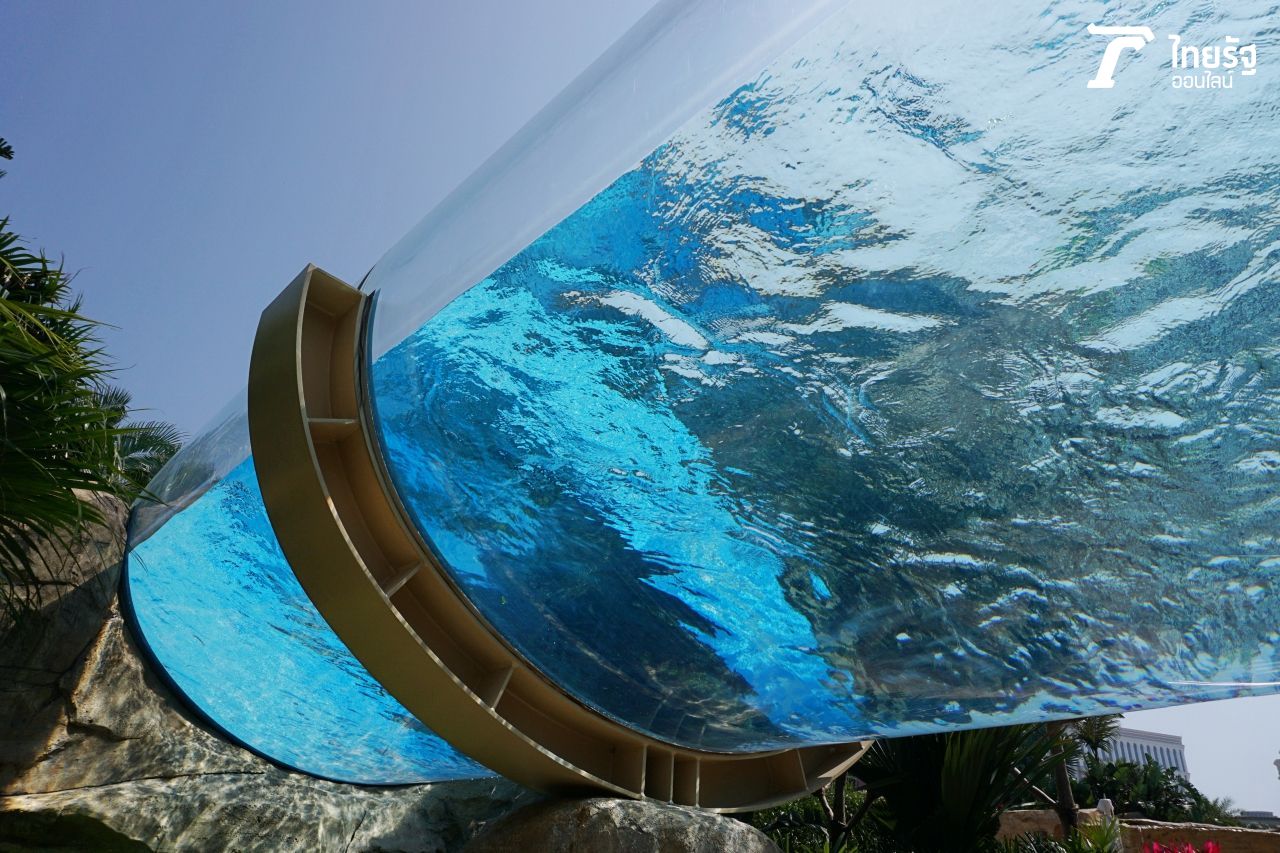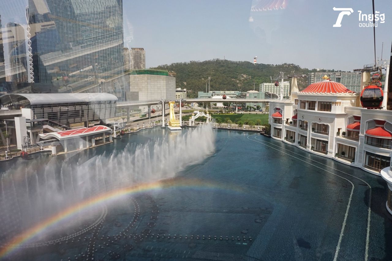 ระหว่างที่กระเช้าลอยข้ามสระน้ำขนาดใหญ่ของโรงแรม ก็จะได้ชมระบำน้ำพุที่สวยงาม สาดส่ายสายน้ำไปมาตามจังหวะเสียงเพลง โรแมนติกไปอีก นี่ถ้าใครมาเที่ยวกับแฟนนะ จะฟินสุดๆ กระเช้านี้นั่ง ‘ฟรี’ ด้วยนะจ๊ะ!