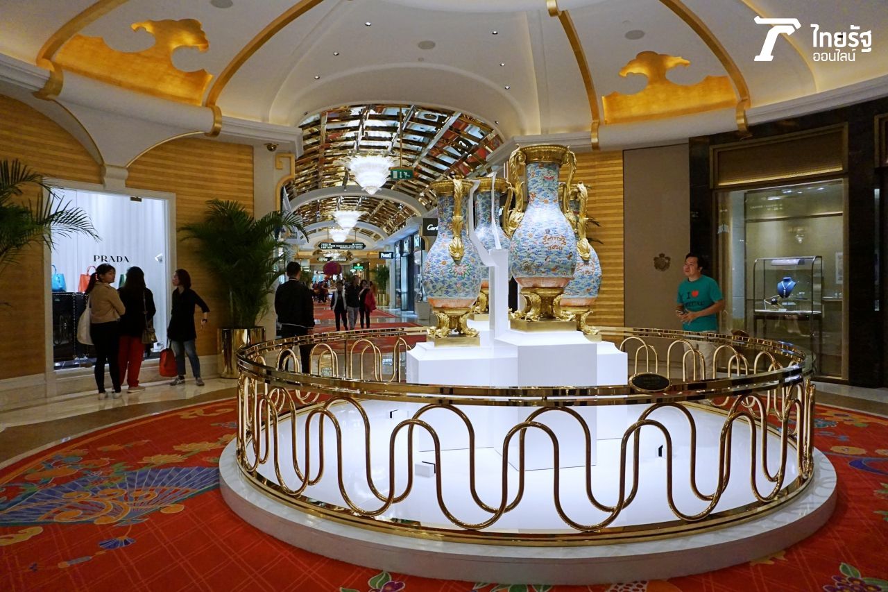 จุดเด่นคือมีสปาที่ใหญ่ที่สุดในมาเก๊า (เสียดายไม่ได้ลองใช้บริการสปาของที่นี่) และมีไฮไลต์ของประดับโรงแรมสุดเลอค่าอย่าง ‘แจกันโบราณ’ จากสมัยราชวงศ์ชิงของแท้ อายุถึง 310 ปี (พบตั้งแต่ปี 1810) ทางเจ้าของโรงแรมไปประมูลได้มาจากอังกฤษ สวยงามล้ำค่ามากๆ
