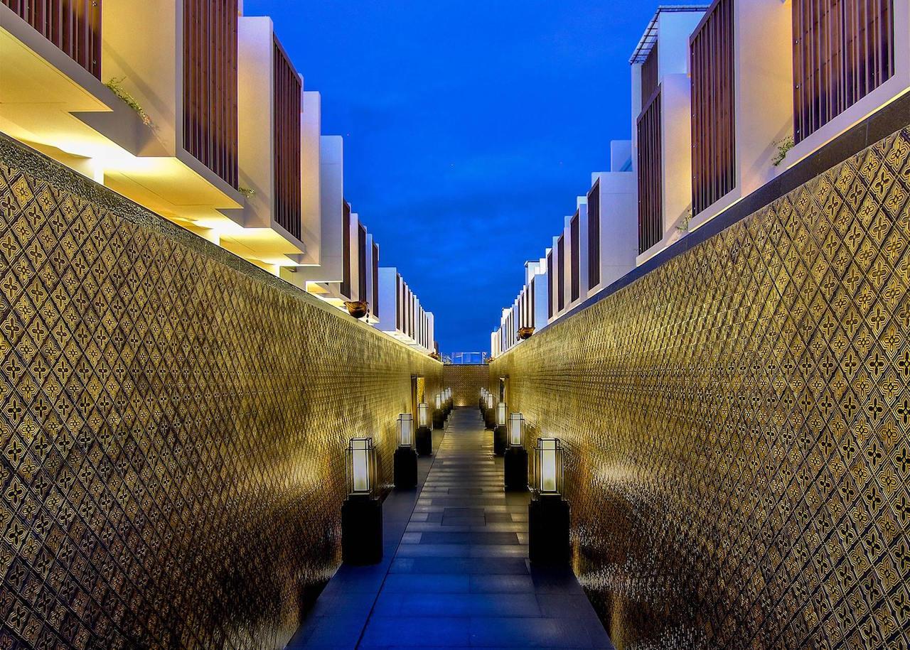 อีกมุมที่เท่ไม่แพ้กัน คือ Water Gallery เป็นกำแพงทางเดินประดับโมเสกสีน้ำเงิน ซึ่งเป็นเอกลักษณ์ของโรงแรม มีสายน้ำพร่างพรมลงมาตามกำแพงตลอดเวลา จุดนี้เป็นทางเดินเพื่อไปยังห้องพัก เวลาเดินผ่าน จะได้ยินเสียงน้ำไหล ช่วยให้จิตใจผ่อนคลาย พอกลางคืนก็มีการจัดไฟแสงสวยๆ ตลอดทางเดินนี้ด้วย