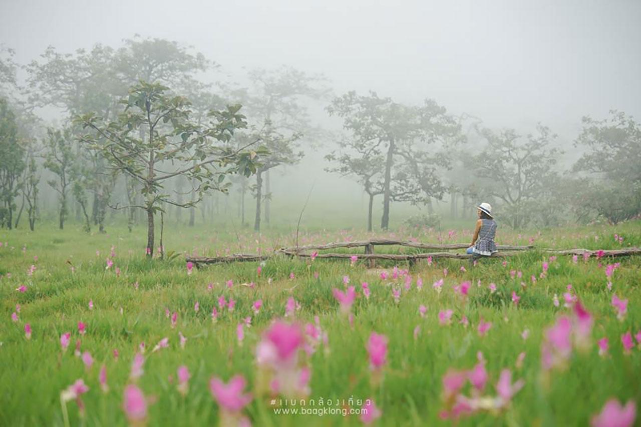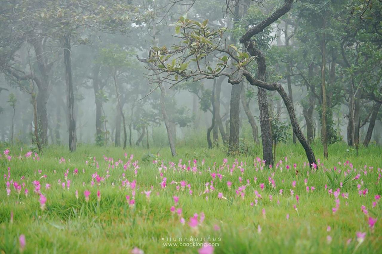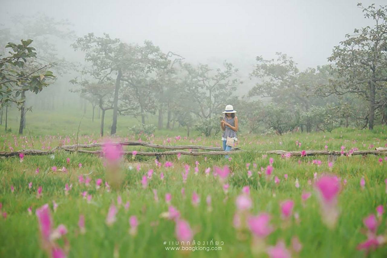ว้าวว เปิดประตูห้องออกมาเจอหมอกที่หนามากๆ อากาศเย็น ฟินไปตามๆกัน เราขับรถจากที่พักขึ้นไปประมาณ 2 กิโลเมตร ก็จะถึงที่จอดรถของอุทยานแล้ว เสียค่าเข้าคนละ 40 บาท จากนั้นต้องนั่งรถรางขึ้นไปอีก เสียค่านั่งรถรางคนละ 30 บาท จากจุดจอดรถเดินไปชมทุ่งดอกเจียวประมาณ 400 เมตร โอ๊ย นี่มันสวรรค์ชัดๆ หมอกสีขาวสลับดอกกระเจียวสีชมพูสดใสที่บานอยู่เต็มทุ่ง ซึ่งดอกกระเจียวจะบานชูช่ออวดความงามให้เราได้ชมกันแค่ปีละครั้งเท่านั้น เราใช้เวลาเก็บภาพที่นี้เป็นชั่วโมงไม่รู้เบื่อ