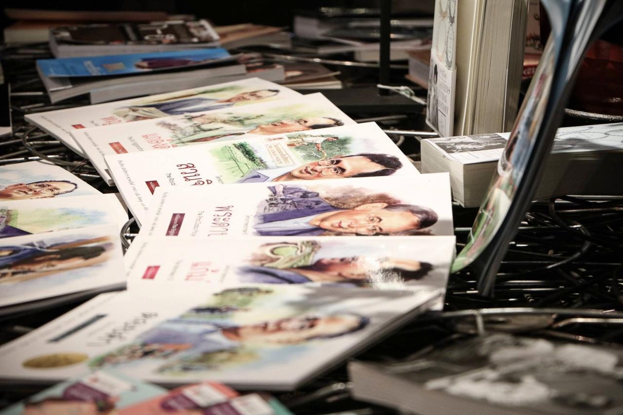 อีกมุมหนึ่งในงานที่น่าสนใจคือ การจัดแสดงหนังสือต่างๆ ที่เกี่ยวกับพระบาทสมเด็จพระปรมินทรมหาภูมิพลอดุลยเดชไว้ทั้งสิ้น ไม่ว่าจะเป็นพระราชกรณียกิจของพระองค์ หนังสือสวนจิตรลดา หนังสือเกี่ยวกับสมเด็จพระราชินีฯ และเชื้อพระวงศ์พระองค์อื่นๆ ซึ่งพ่องานผู้ที่รวบรวมมาจัดแสดงให้ได้ชมและได้อ่านกันก็คือ ประธาน ธีระธาดา หัวเรือใหญ่แห่งนิตยสาร art4d