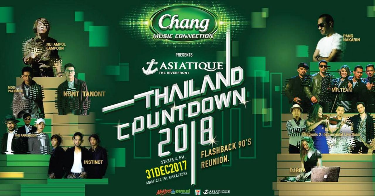 คืนวันที่ 31 ธันวาคม 2560 ชวนมานับถอยหลังสู่ศักราชใหม่กับ Asiatique Thailand countdown 2018 ร่วมฉลองปีใหม่กับเพื่อนรู้ใจในบรรยากาศสุดจ๊าบ กับศิลปินดัง ในยุค 90’s ได้แก่ หนุ่ย อำพล, มอส ปฏิภาณ, ป้าง นครินทร์, เดอะ พาร์กินสัน, อินสติ้งค์, มิสเตอร์ทีม, นนท์ ธนนท์, ดีเจ ริต้า, นาฟ อิเลคโทรนิค ไลฟ์ แบน