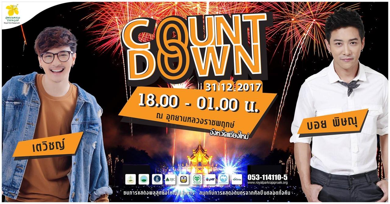 วันที่ 31 ธันวาคม 2560 มาร่วมเคาต์ดาวน์พร้อมชมการแสดงพลุยาวที่สุดเท่าที่เคยจัดมา สนุกไปกับคอนเสิร์ตจาก “เตวิชญ์” และ “บอย-พิษณุ” พร้อมสนุกกับกิจกรรมบนเวทีตลอดทั้งคืน เวลา