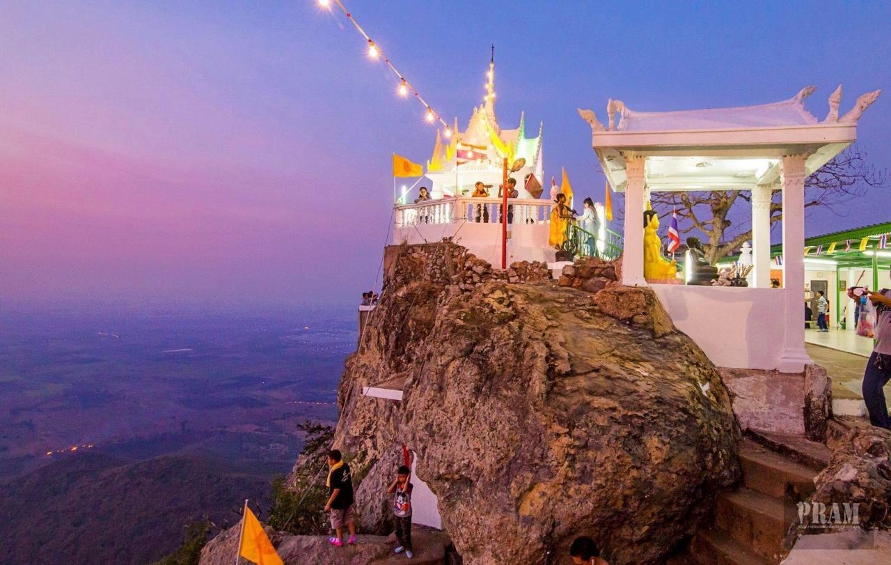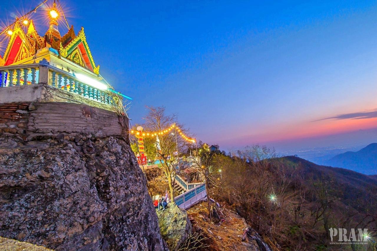 บนยอดเขาจะมีการจัดงานยิ่งใหญ่ ประดับไฟสวยงาม ชมวิวทิวทัศน์จากมุมสูงได้ 360 องศา สามารถเห็นเมืองลพบุรีได้โดยรอบ มีกูรูแนะนำว่า ควรเดินขึ้นช่วงกลางคืนจะได้ไม่ร้อน (ขาขึ้นใช้เวลาประมาณ 2-3 ชั่วโมง) และจากด้านบนมองลงมาด้านล่าง จะเห็นอ่างเก็บน้ำรูปหัวใจด้วย ว้าว! โรแมนติกไปอีก...