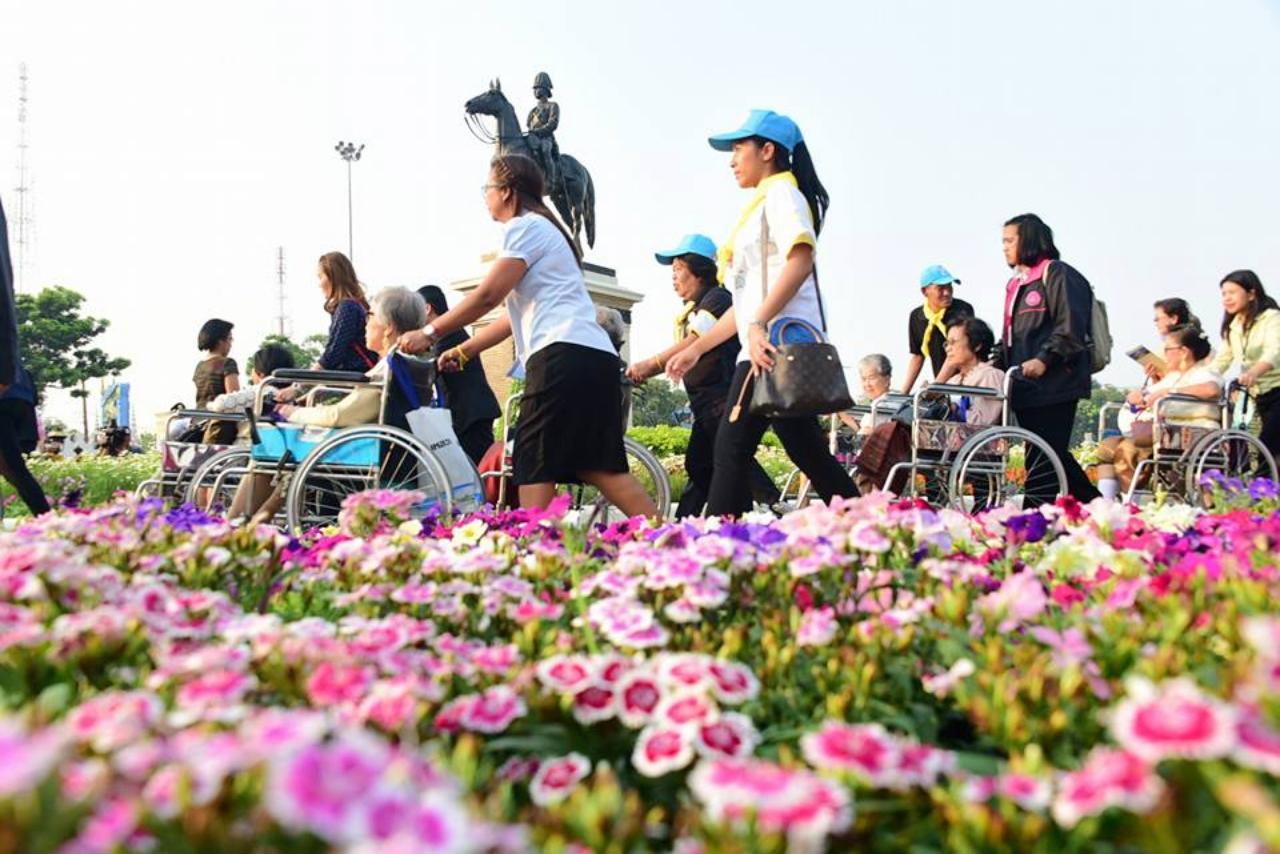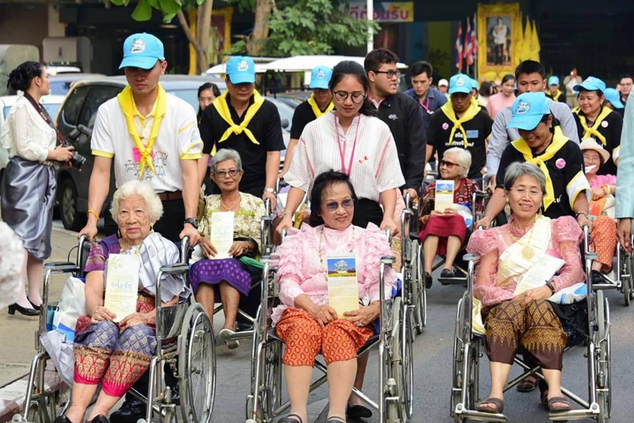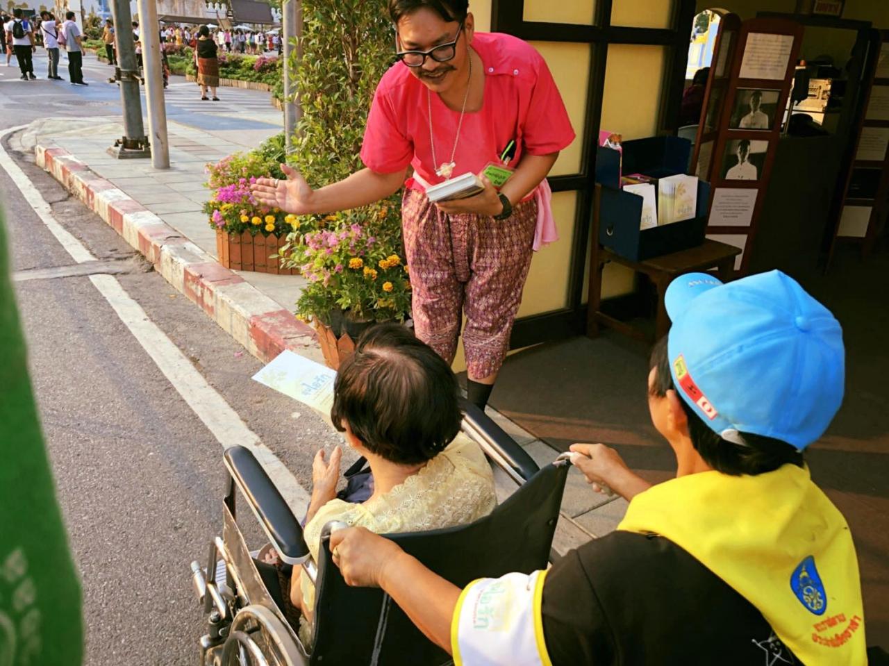 พอผ่านจุดคัดกรองมาแล้ว หากเป็นผู้สูงอายุก็จะมีจิตอาสามาบริการวีลแชร์ หรือใครที่ต้องการความช่วยเหลือเป็นกรณีพิเศษ ขาเดินไม่สะดวก ก็ติดต่อเจ้าหน้าที่ได้เลย ส่วนเด็กๆ ที่มากับผู้ปกครอง เจ้าหน้าที่จะมีป้ายห้อยคอเพื่อป้องกันการพลัดหลง