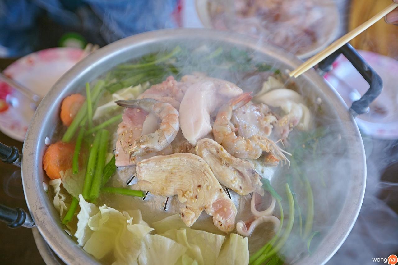 ใกล้กันกับร้านมันเผา เป็นร้านหมูกระทะเลยถือโอกาสกินซะตอนกลางวันนี่แหละ อย่างที่บอกค่ะว่าอากาศบนเขาจะเย็นตลอด ได้ทานอะไรร้อน ๆ มันใช่เลยร้านนี้ชื่อว่า ครัวบ้านสวน อยู่ตรงทางขึ้นเขาเช่นเดียวกัน สั่งหมูกระทะชุดใหญ่ราคา 300 บาท ราคาแรงไปนิดแต่ให้เยอะใช้ได้