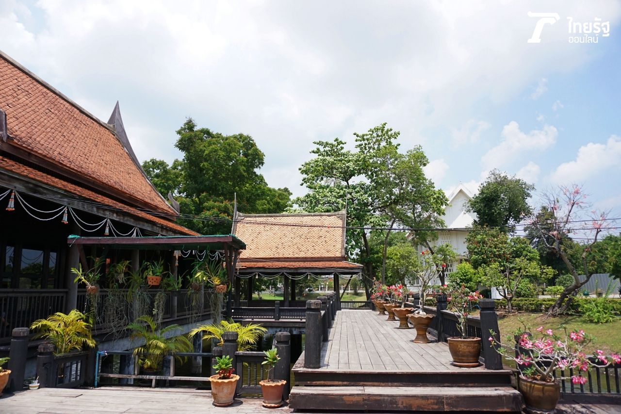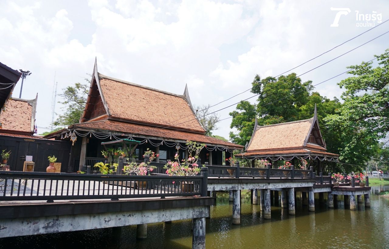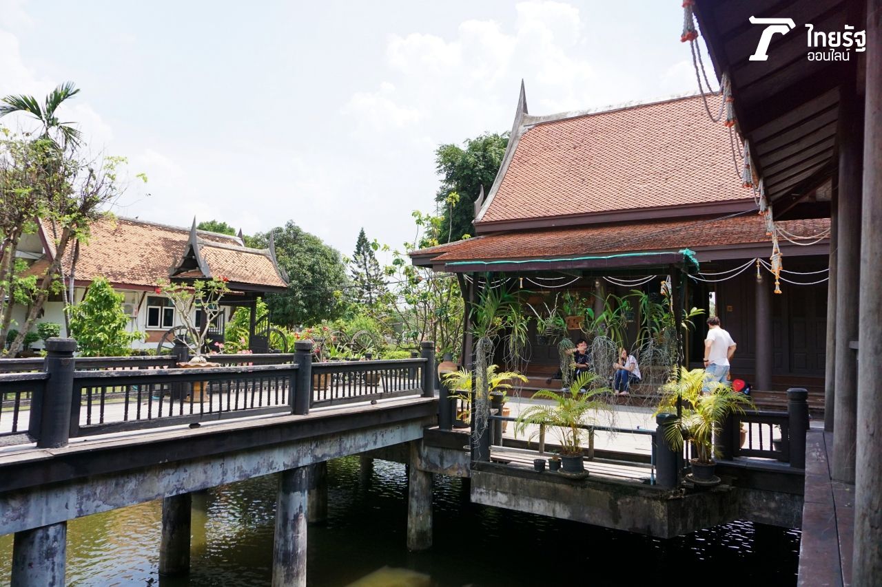 นอกจากนี้ ไฮไลต์ที่เราได้ไปเดินเที่ยวชมก็คือ หมู่อาคารเรือนไทย สร้างคร่อมอยู่บนสระน้ำ แสดงรูปแบบเรือนไทยภาคกลางโบราณ มีข้าวของเครื่องใช้ต่างๆ ของผู้คนในอดีต
