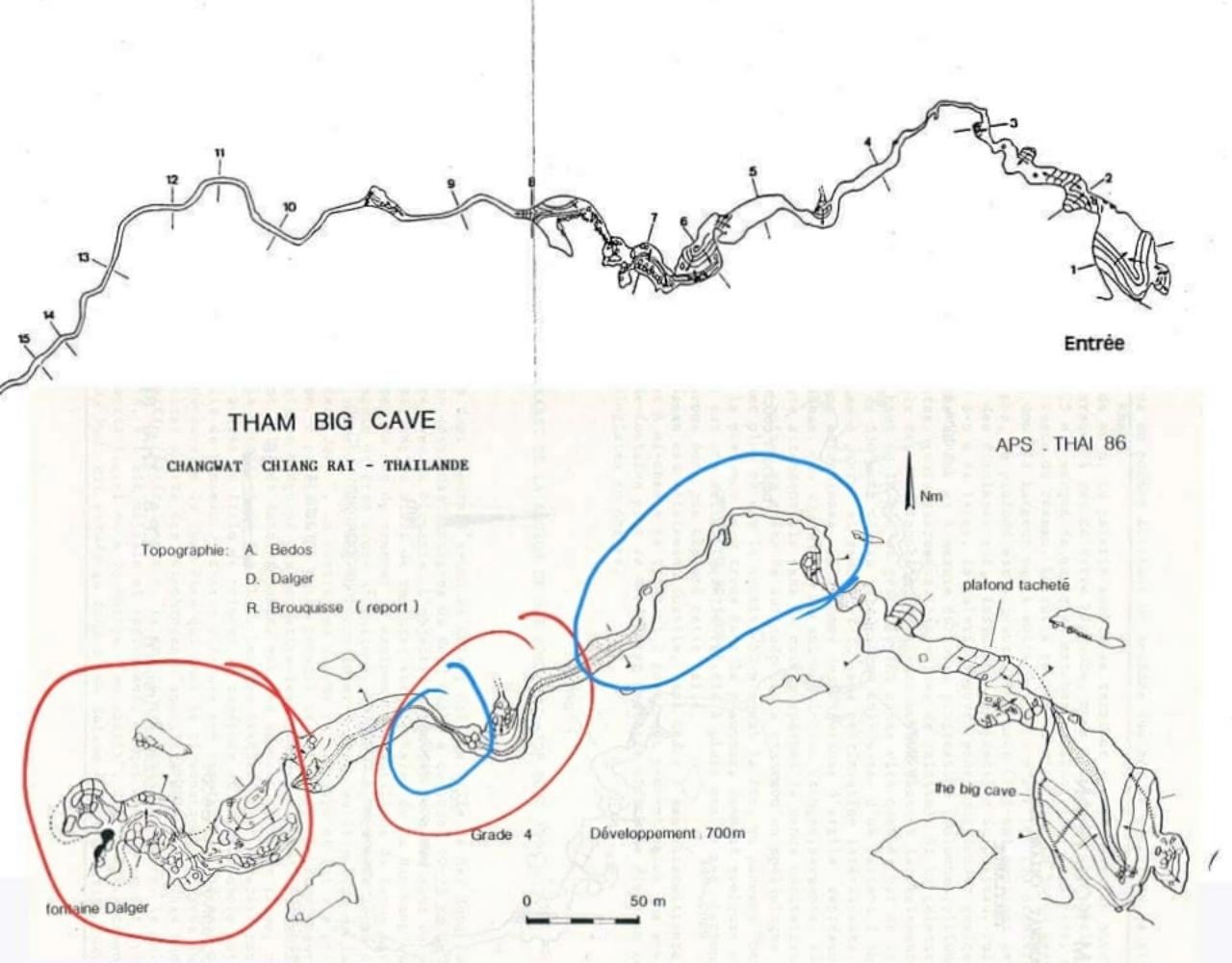 และโถงแยกฝั่งตรงข้ามทางเดินเข้าถ้ำ มีความยาว 68.27 เมตร ซึ่งการสำรวจในครั้งนี้ สำรวจจนสิ้นสุดห้องลับแล เนื่องจากทางที่จะไปโถงอื่นๆ นั้นลำบากมาก”