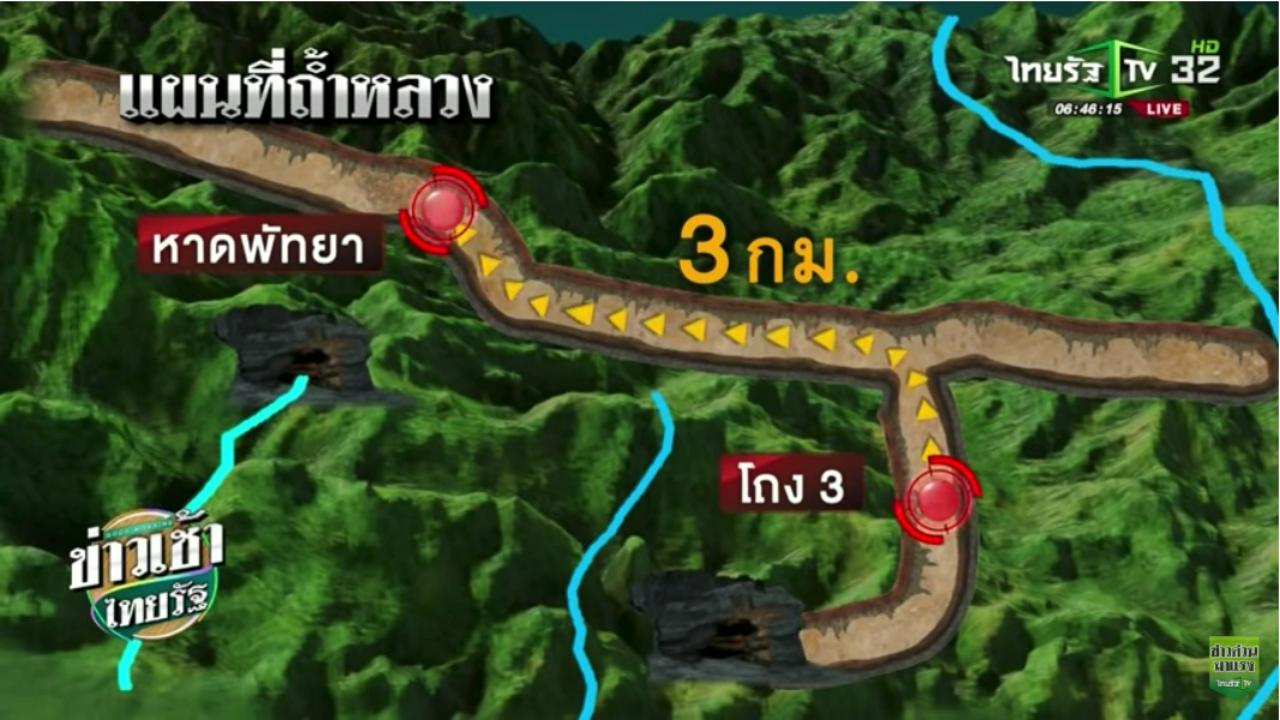 จากทางสามแยก เดินเข้าถ้ำมาทางซ้ายอีกประมาณ 600 เมตร จะเจอกับโถงพัทยาบีช เป็นจุดที่เจ้าหน้าที่กู้ภัยคาดการณ์ว่าเด็กๆ ทั้ง 12 คนและโค้ชเอก จะติดอยู่ตรงนั้นในตอนแรก แต่เมื่อเข้าไปถึงจริงๆ กลับพบน้ำท่วมสูง