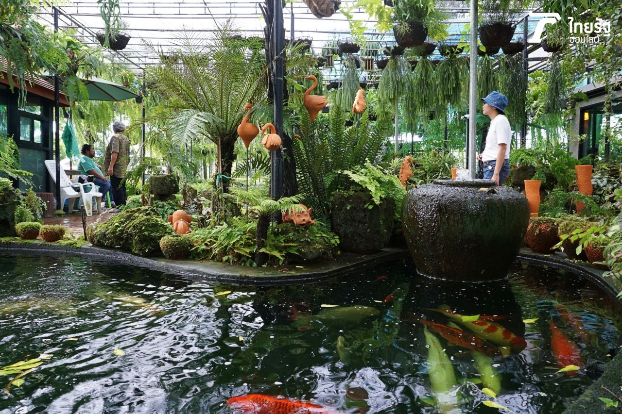 ในร้านกาแฟมีที่นั่งแอร์เย็นๆ นะ แต่นักท่องเที่ยวส่วนใหญ่มักจะเลือกนั่งข้างนอกที่เป็นสวนสวยๆ แถมยังมีที่นั่งบางมุมที่ติดริมน้ำด้วย นอกจากนี้ก็ยังมีทางเดินข้ามสระขนาดเล็ก ในสระน้ำนั้นก็มีปลาคาร์ฟตัวใหญ่ยักษ์ว่ายไปมาให้ได้ชมเพลินๆ แถมภายในสวนบางจังหวะเขาจะเปิดฟ็อกกี้ Foggy เป็นละอองหมอกบางๆ โห...สวย ได้อารมณ์เหมือนเที่ยวในป่าหมอกเลยทีเดียวเชียว