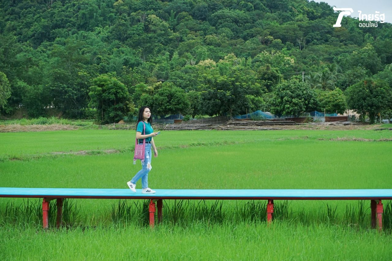 ไฮไลต์ของที่นี่ก็คือ การเดินบนสะพานไม้ไผ่ชมทุ่งข้าวเขียวขจีในหน้าฝน และชมทุ่งข้าวออกรวงเหลืองอร่ามในหน้าหนาว บรรยากาศร่มรื่น สวยงามแบบเต็มสิบจริงๆ แต่ล่าสุด...เนื่องจากสะพานไม้ไผ่ชำรุดไปซะเยอะ คุณหมู เจ้าของภูกะเหรี่ยงเลยปรับปรุงให้เป็นพื้นทางเดินแข็งแรงทนทานมากขึ้น และทาสีฟ้าสดใส ในแนวคิดที่ว่า สายน้ำกลางทุ่งข้าว ไอเดียคูลสุดๆ
